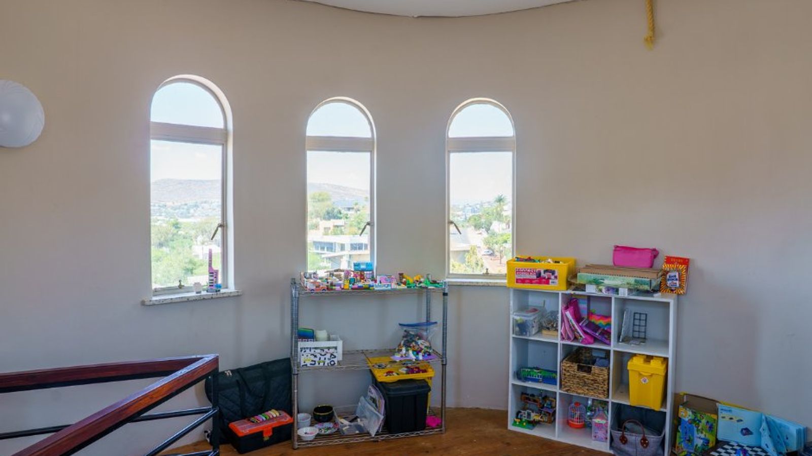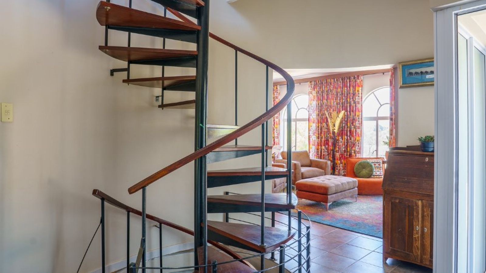 • Spiral staircase leading to an attic room