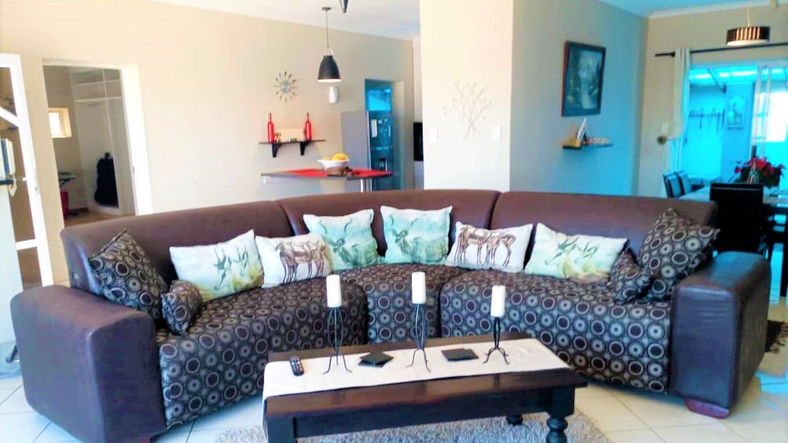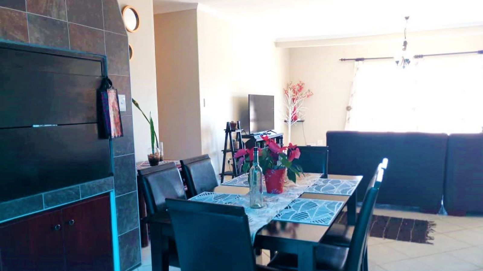 Spacious and versatile family home available to rent. The open-plan living area is perfect for comfortable living and entertaining, featuring two indoor braai areas and a cozy wood-burning fireplace in the lounge.