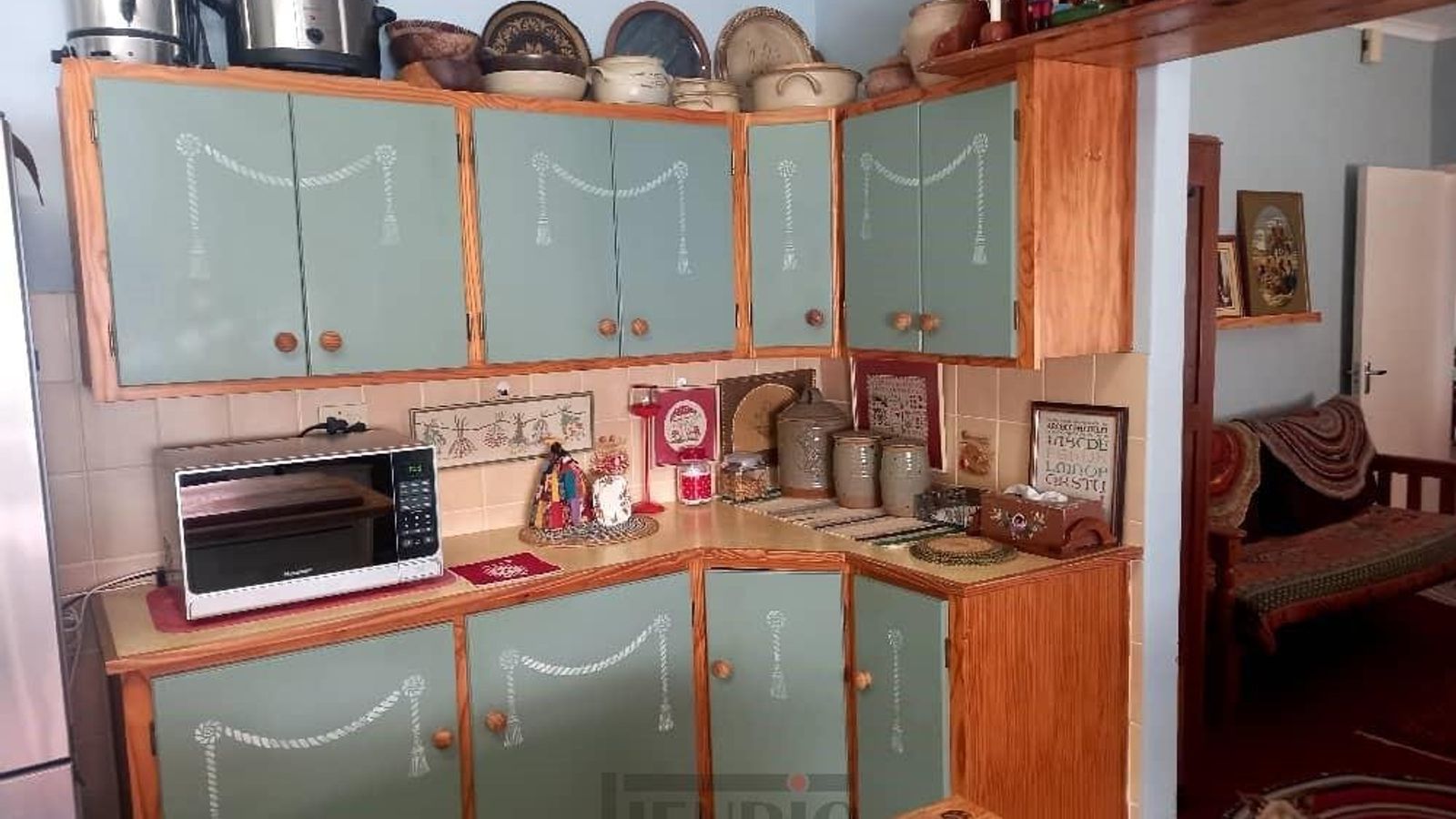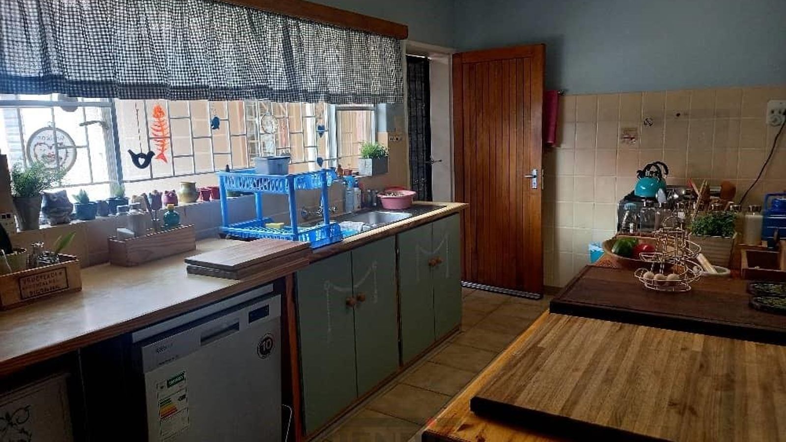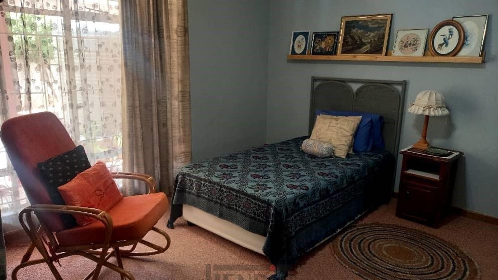 The house has 3 spacious bedrooms with Bic's, kitchen with Bic's (no stove), separate dining huge lounge/TV room, plus a 4th bedroom (on-suite) which has a separate entrance and is presently used as a bachelor flat. Can easily form part of the rest of the house or it can be rented out. Floor covering throughout house consists of ceramic tiles or carpets.