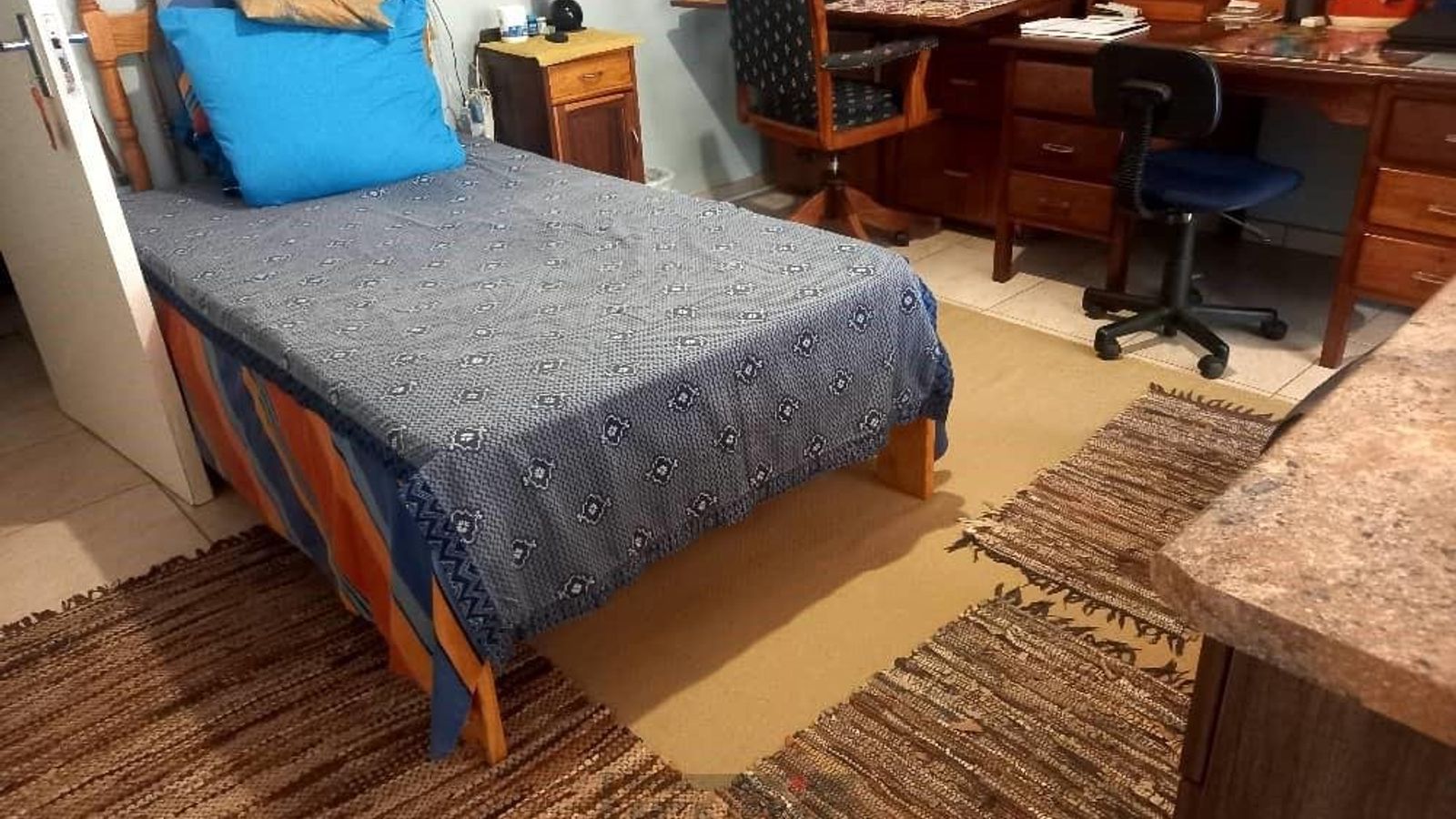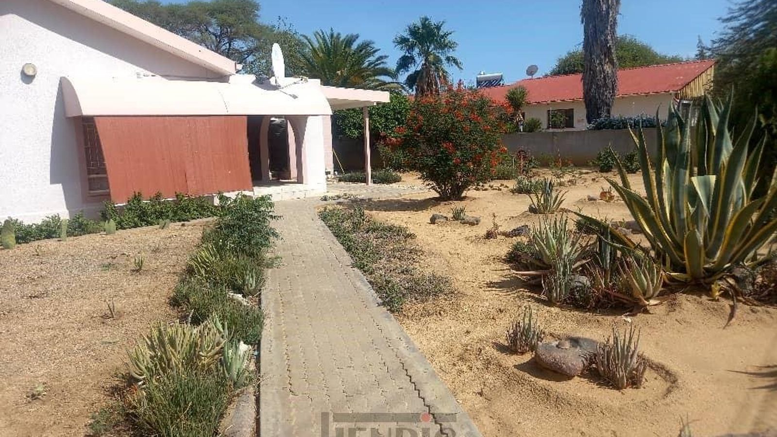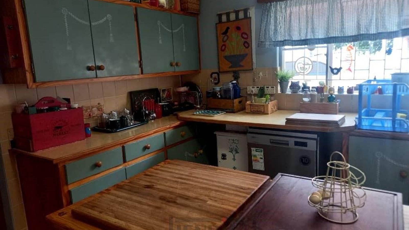 The house has 3 spacious bedrooms with Bic's, kitchen with Bic's (no stove), separate dining huge lounge/TV room, plus a 4th bedroom (on-suite) which has a separate entrance and is presently used as a bachelor flat. Can easily form part of the rest of the house or it can be rented out. Floor covering throughout house consists of ceramic tiles or carpets.
