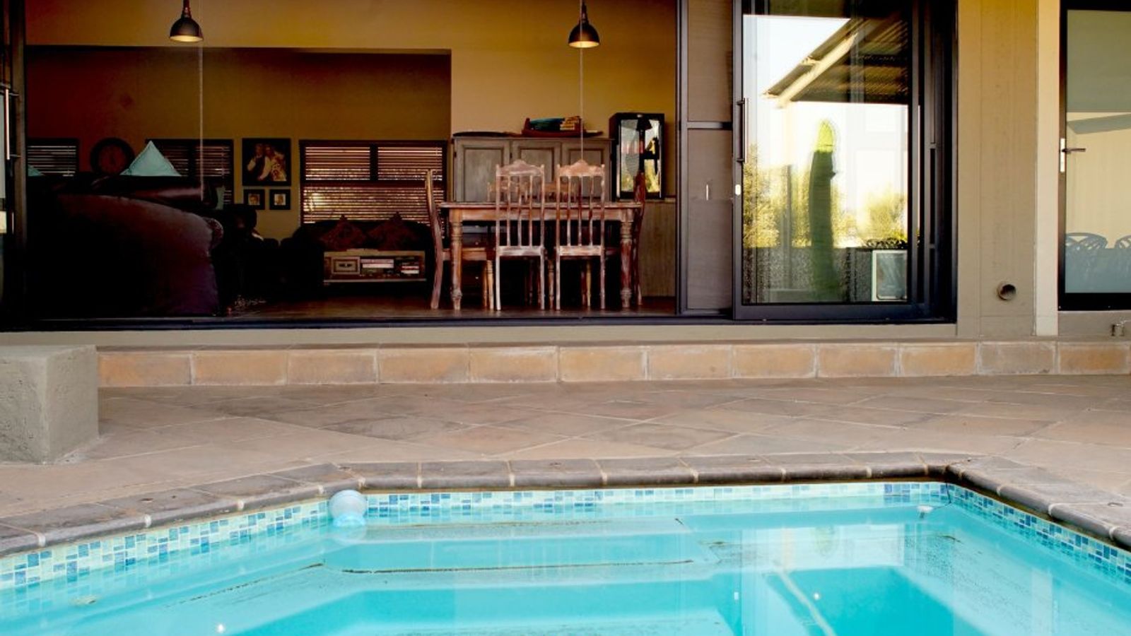 • Indoor braai & entertainment area opening to a covered stoep with heated splash pool