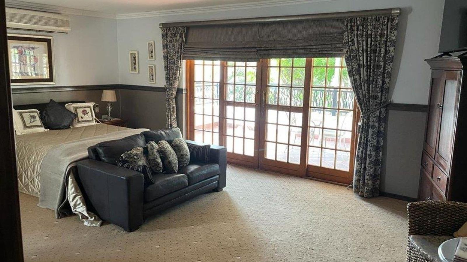 Work, Live, and Play in this spacious, luxurious, air-conditioned Dutch-style family home with four large bedrooms, en-suite bathrooms, and plenty of built-in cupboards. Three garages and a two-car carport are included. The double garage has cabinets for storage.