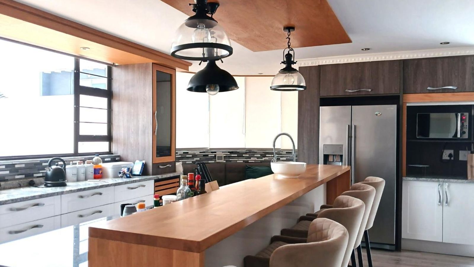 Kitchen with granite tops and beautiful view