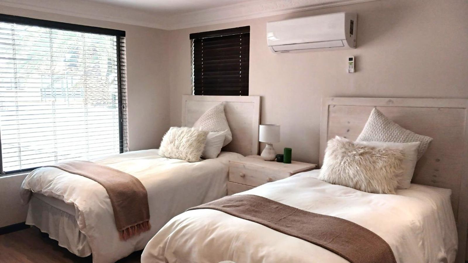 Wooden blinds throughout