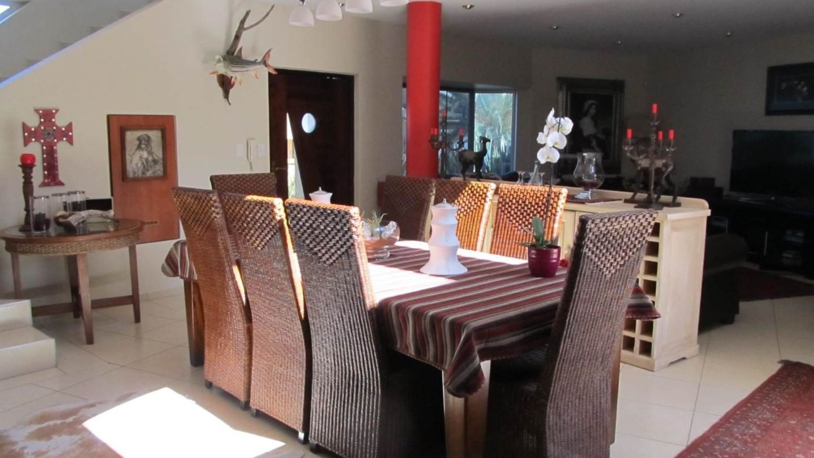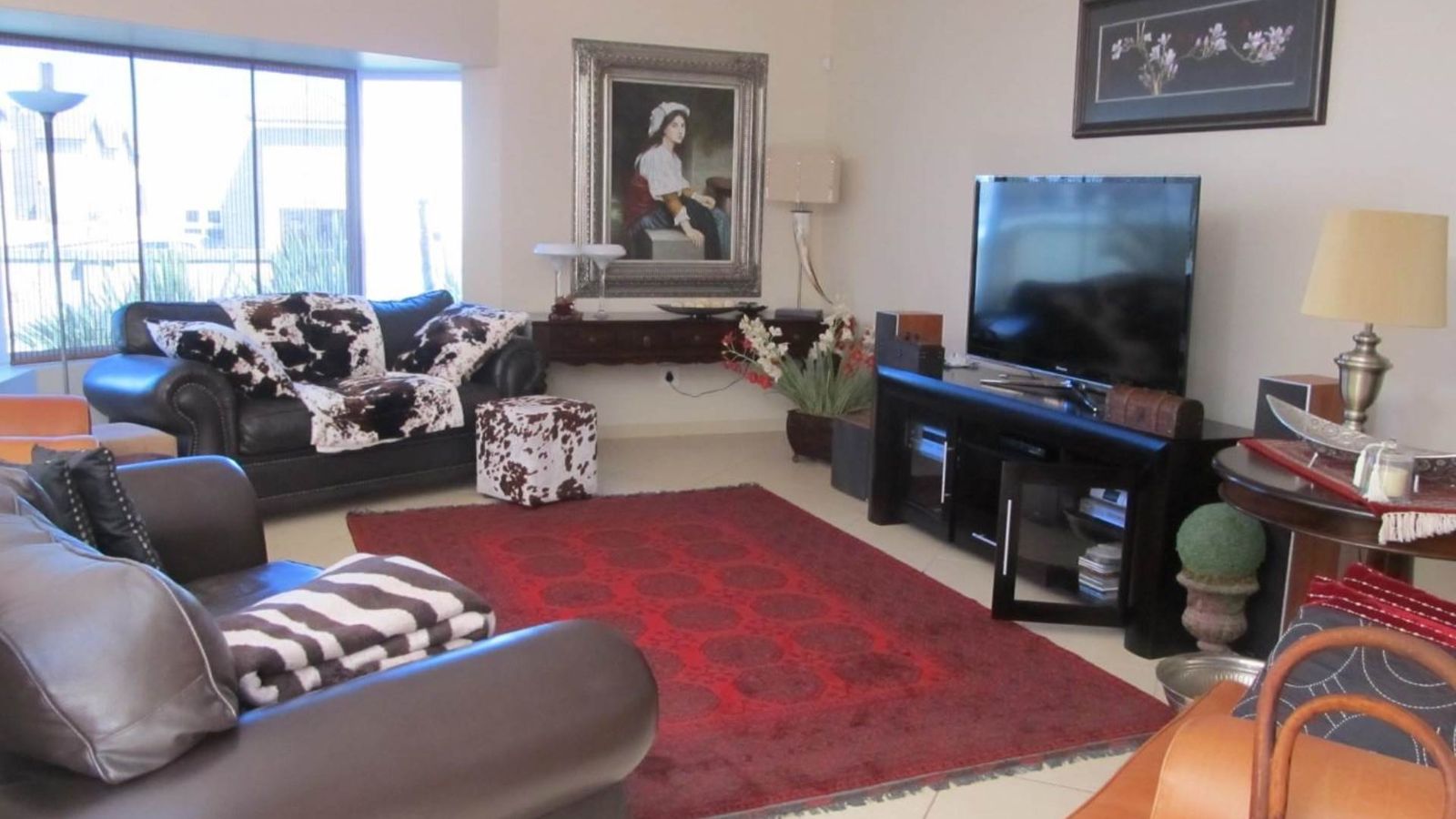 Living area leading onto a spacious veranda and a lovely and well maintained garden with fish pond, jacuzzi, outside shower & toilet and an entertainment Pavilion