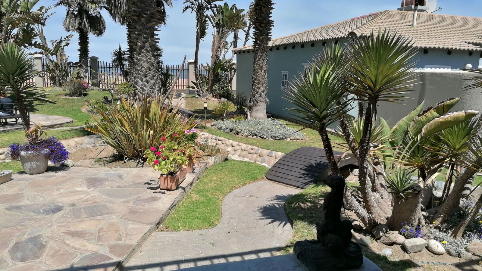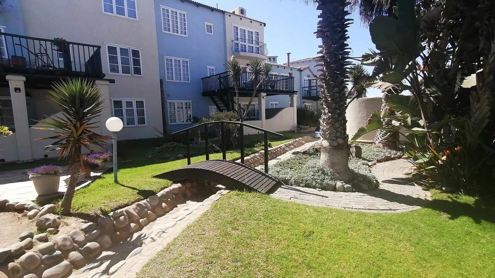 Hosting friends or need your own private space? The lower level flat is ideal — complete with its own bedroom, en-suite bathroom, kitchenette, and cozy lounge. Step out to a private patio surrounded by beautiful communal gardens, just moments from the ocean.