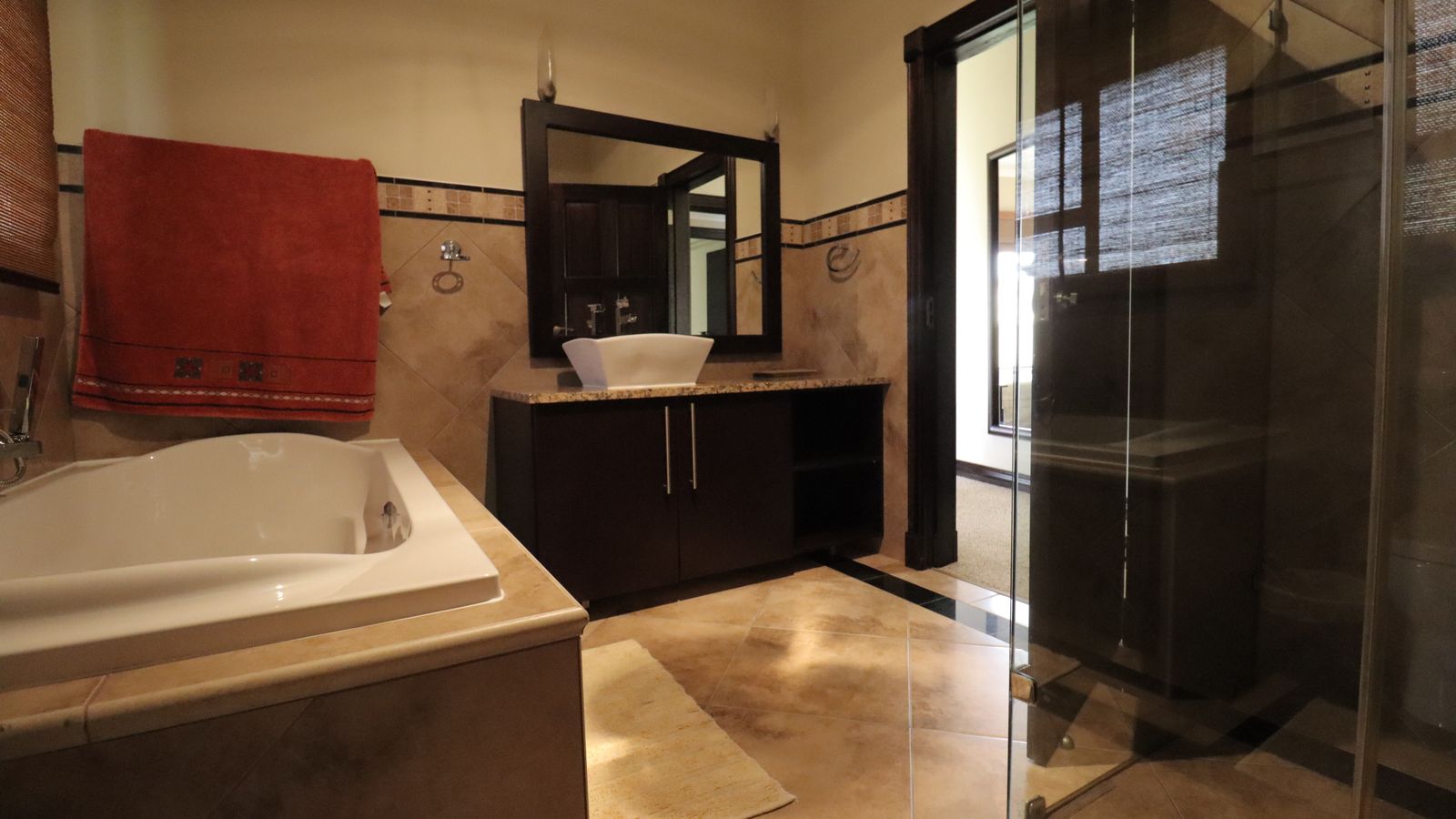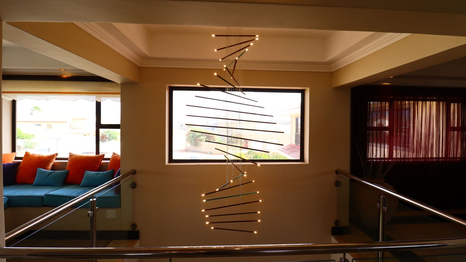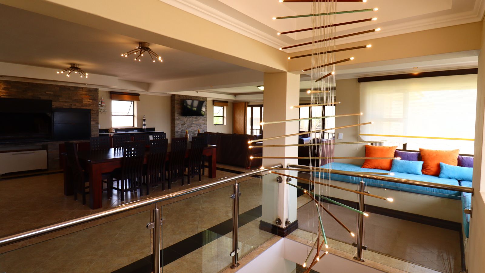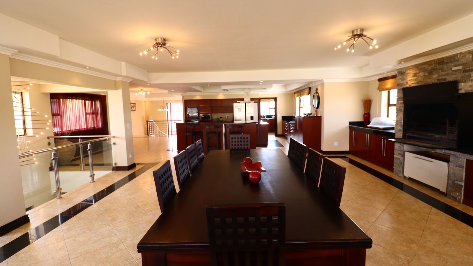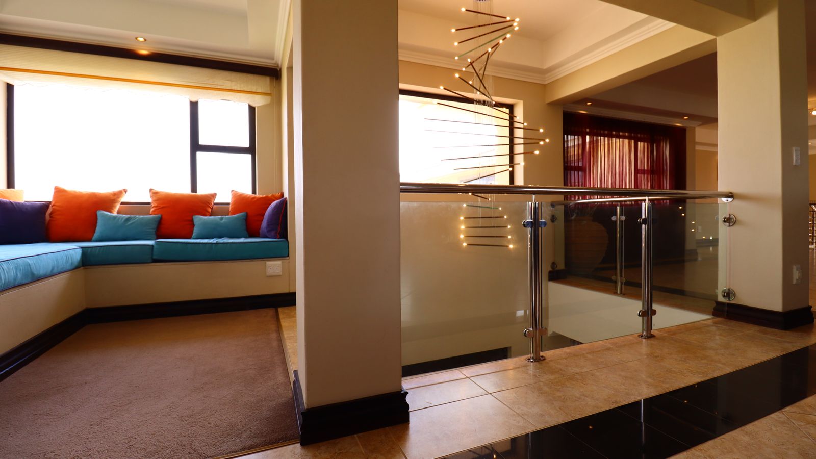 Enjoy the soothing ambience of dim lighting throughout the home, accentuating the exquisite details of chandeliers in key spaces.