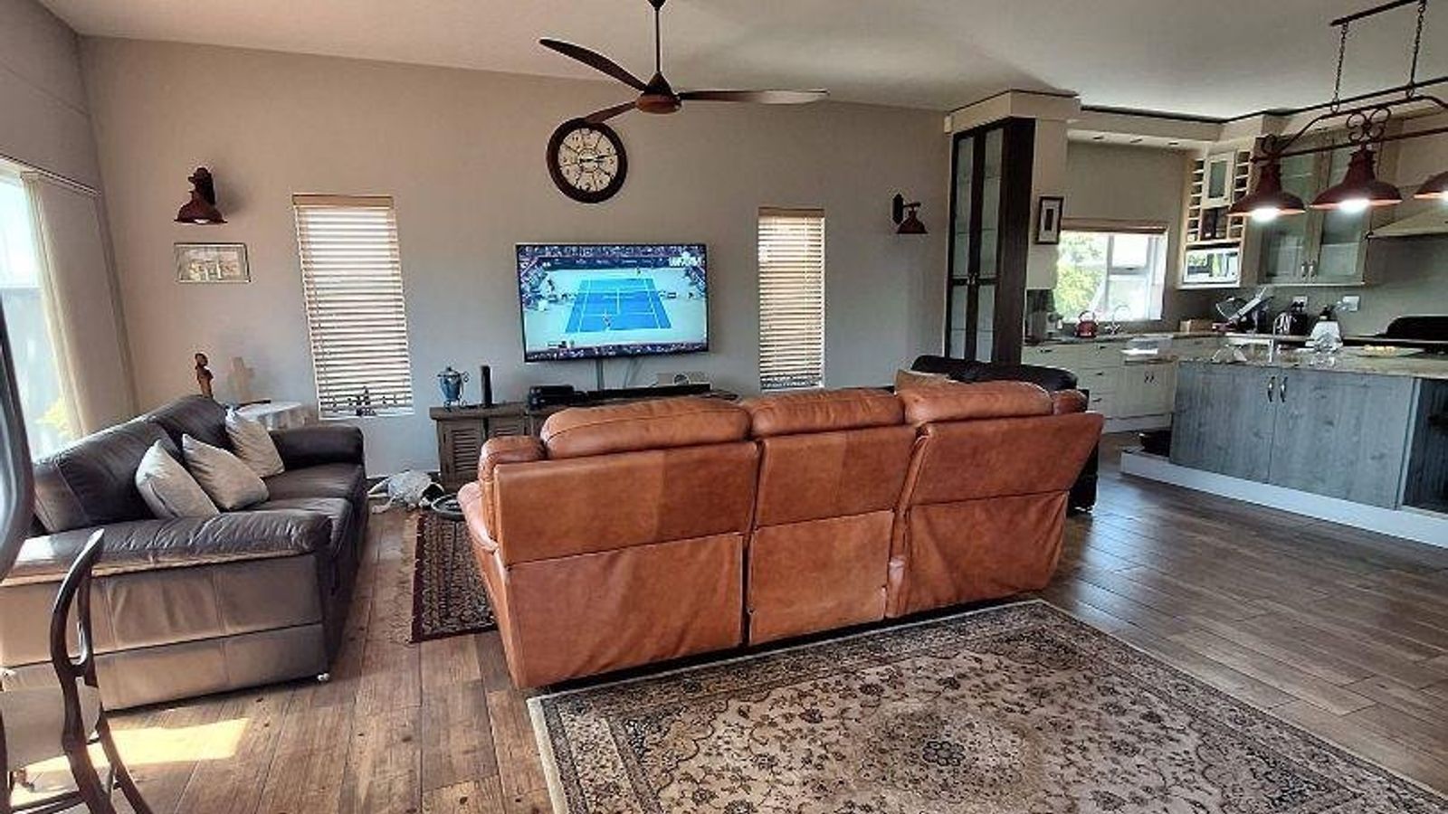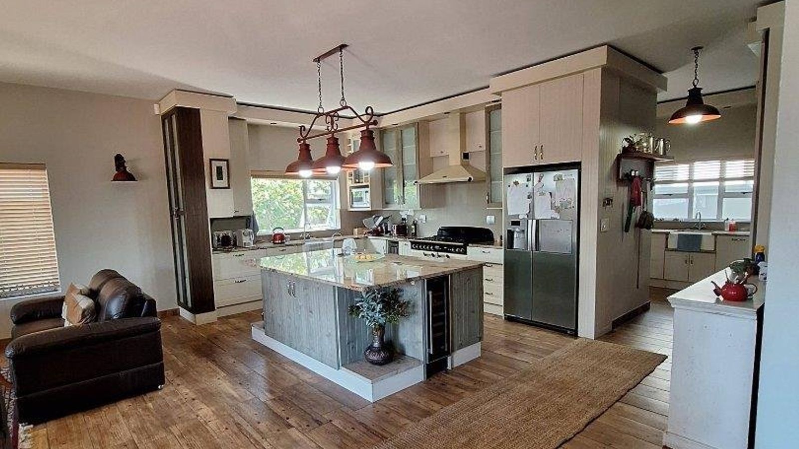 The open-plan layout creates an airy, spacious feel , further enhanced by a seperate scullery that keeps the main prep area pristine. Strategically positioned for maximum convenience, it offers direct access to the 3 car garage . The spacious dining and living areas are designed for ultimate comfort. These warm and inviting spaces are anchored by a classic fireplace , perfect for cozy winter evenings. For effortless entertaining , the seamlessly integrated indoor BBQ allows you to host gaterings in any season , blending the comfort of the interior with the joy of traditional grilling .