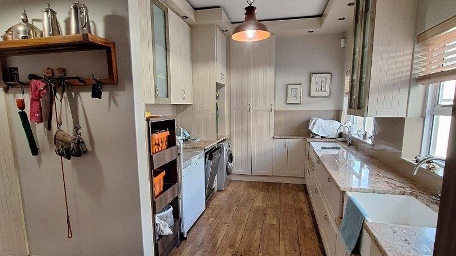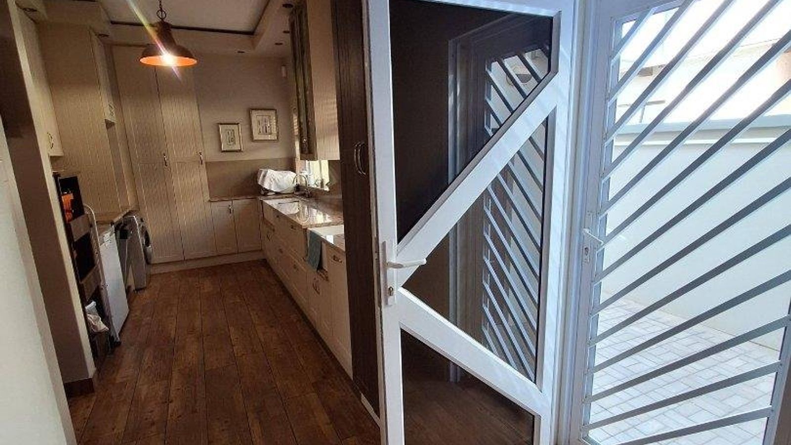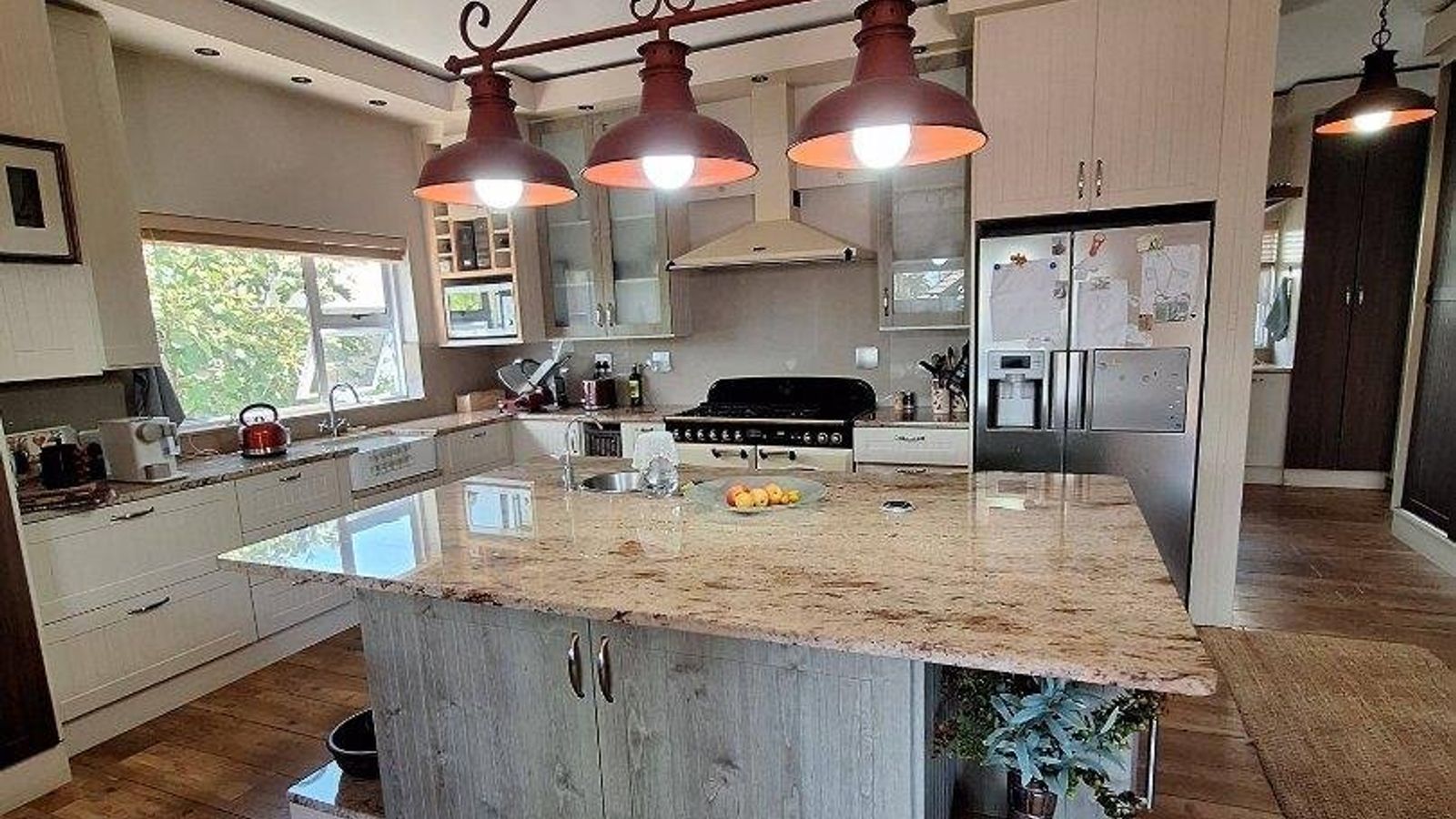 This property offers 3 garages and an additional store room , outside toilet , automated gate and garages , alarm and beams installed .