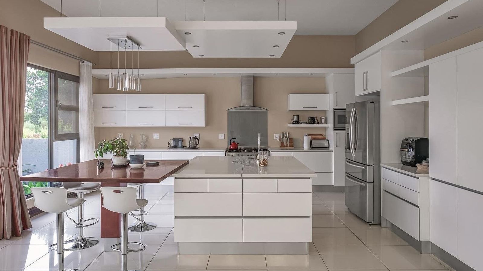 Chef’s Kitchen: A stunning, ultra-modern kitchen with a large central island, sleek white finishes, and a separate scullery—perfect for hosting dinner parties.
