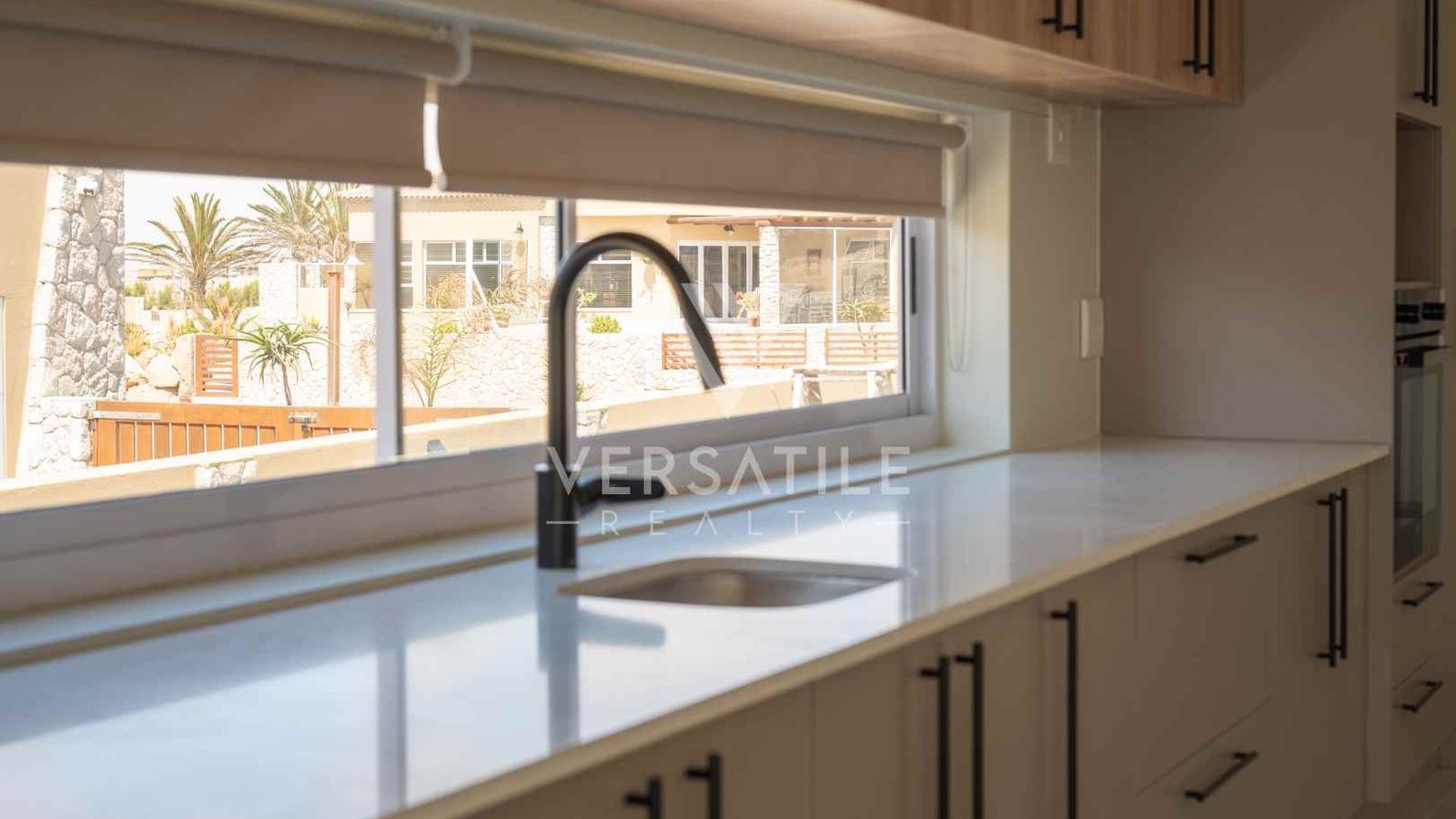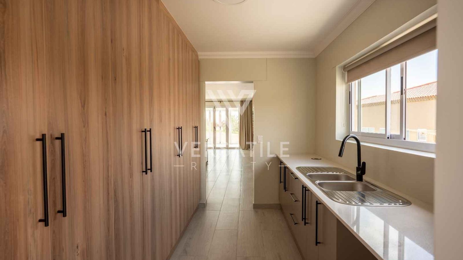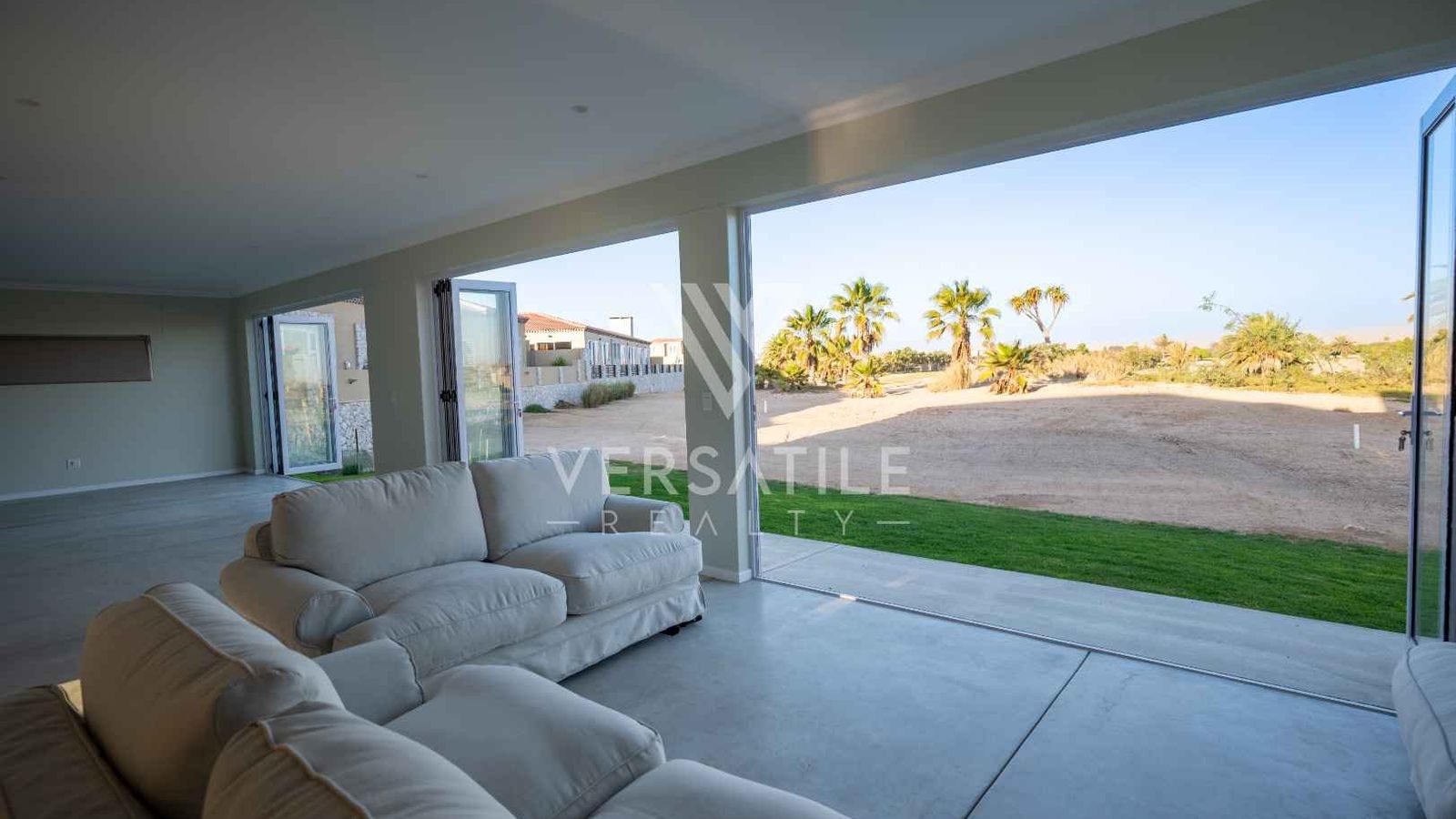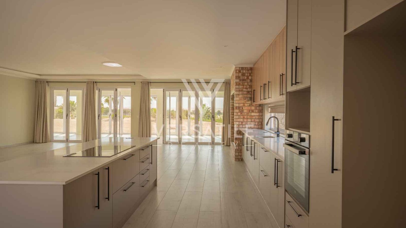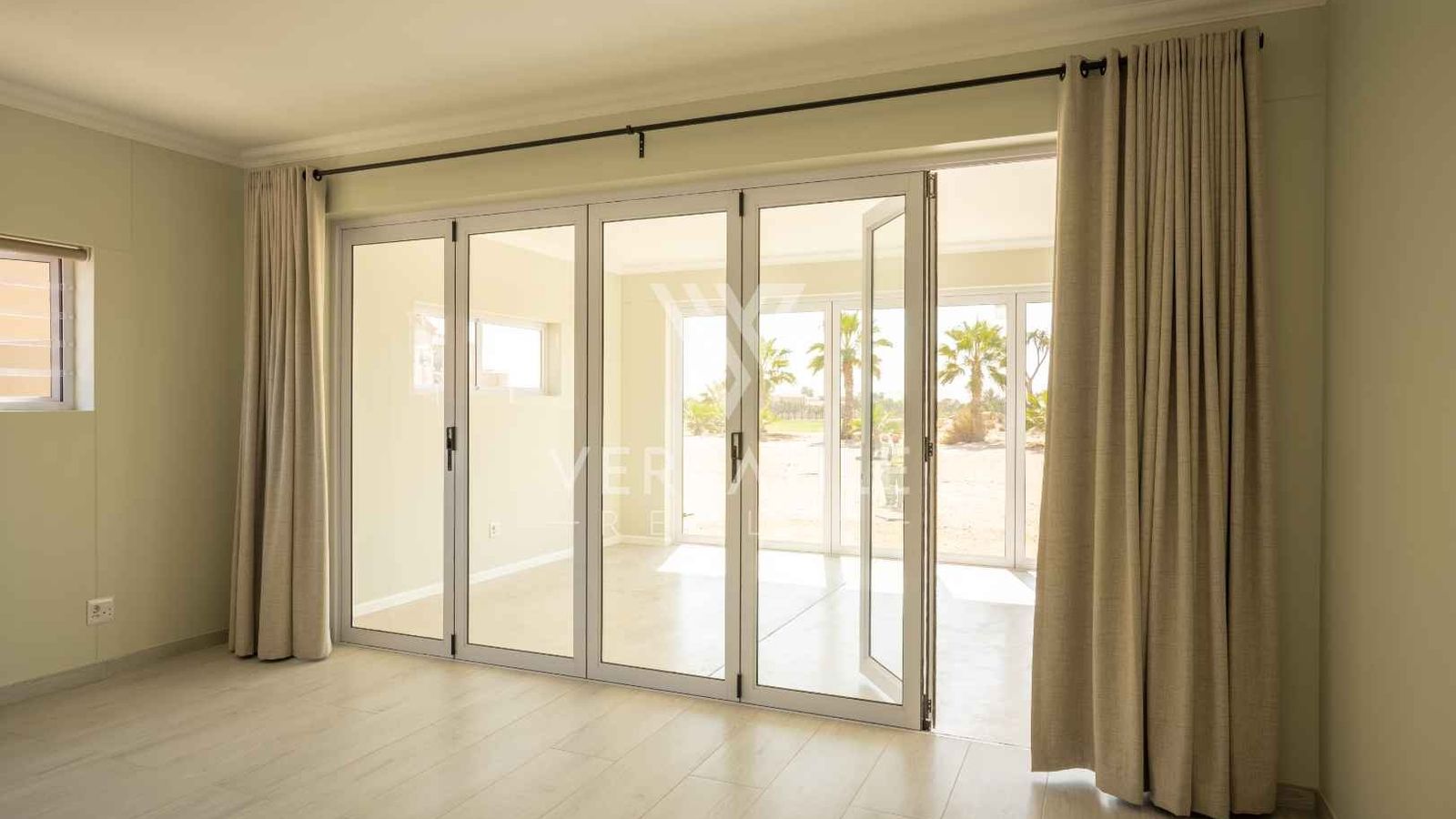 The large enclosed patio with stackable doors offers seamless indoor-outdoor flow to the greens. A separate scullery and laundry enhance the main house, while the granny flat provides a kitchenette and single garage.