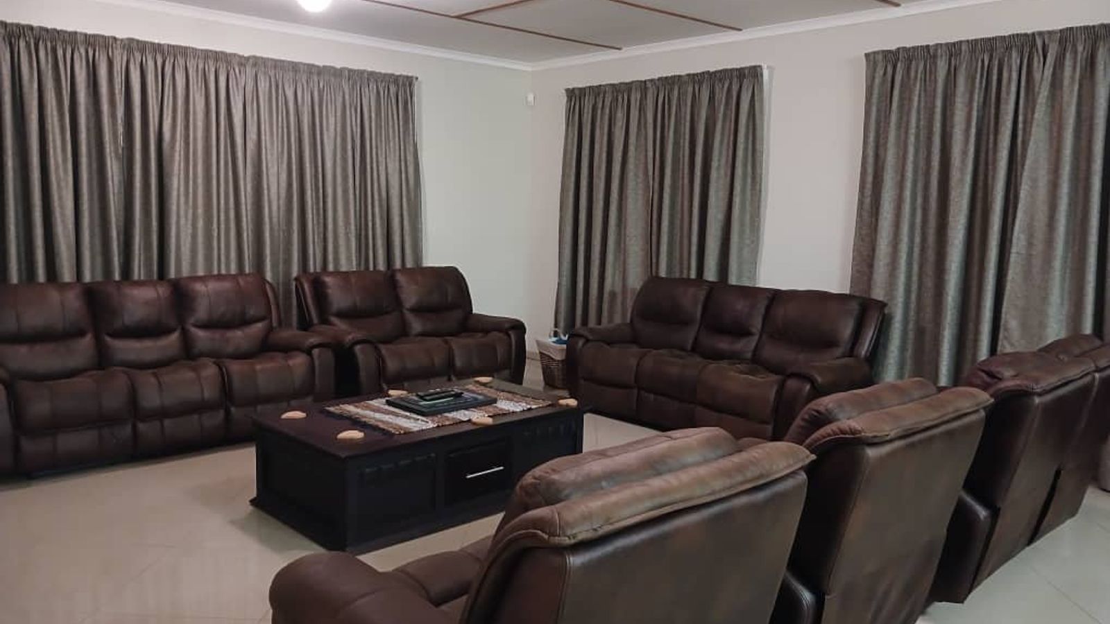 Featuring five spacious bedrooms and four well-appointed bathrooms, this home ensures ample space for everyone. The expansive lounge and dining room flow seamlessly into the open-plan kitchen, making it the ideal setting for family gatherings and entertaining guests. The kitchen is equipped with modern appliances and offers a generous scullery and laundry area, complete with an outside door for easy access.