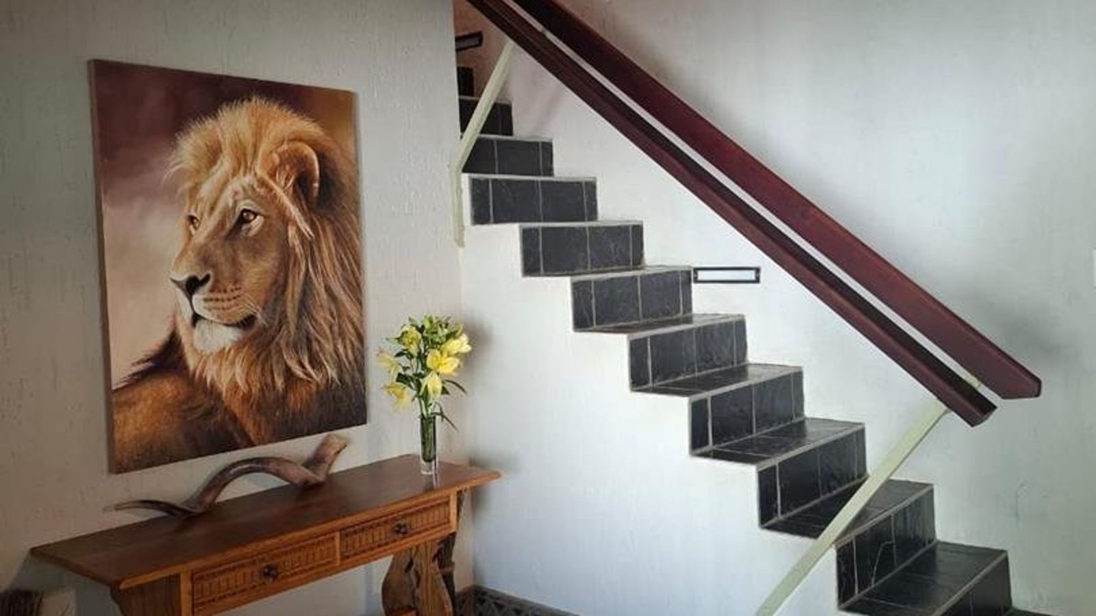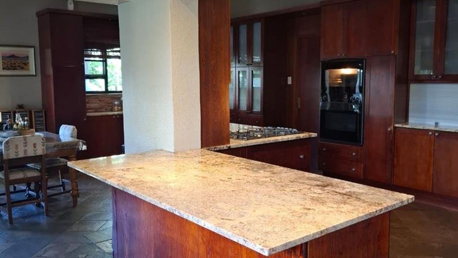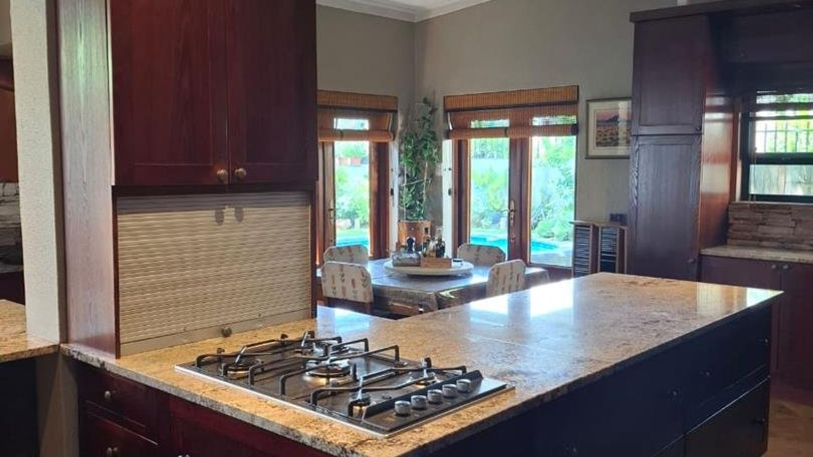 The main dwelling is an expansive 573 sqm, featuring a well-appointed lounge, dining room, and TV room. The kitchen is equipped with built-in cupboards (BIC) and built-in stove (BIS), complemented by a scullery for added convenience. Entertain guests in the spacious entertainment room or relax in one of the five generously sized bedrooms, each furnished with BIC. The home also boasts five modern bathrooms, ensuring comfort and privacy for all residents.