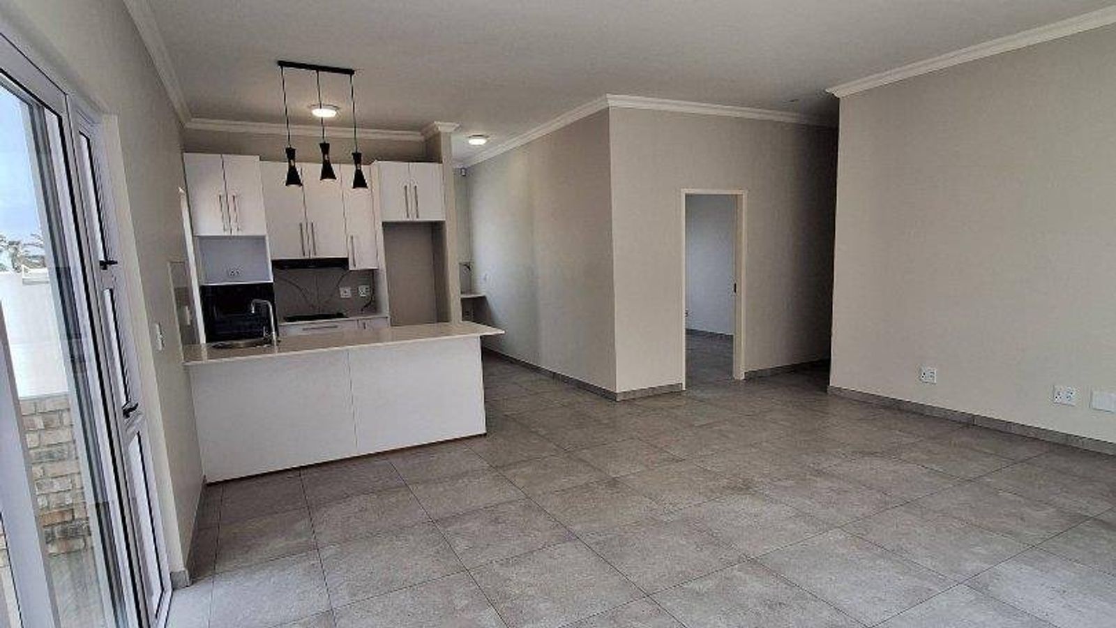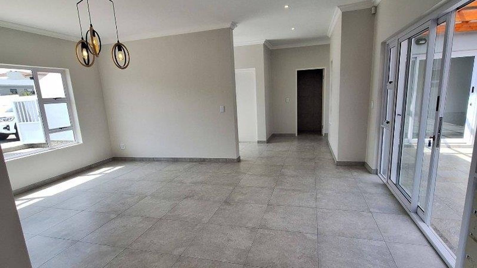 - Large sliding door leading onto patio