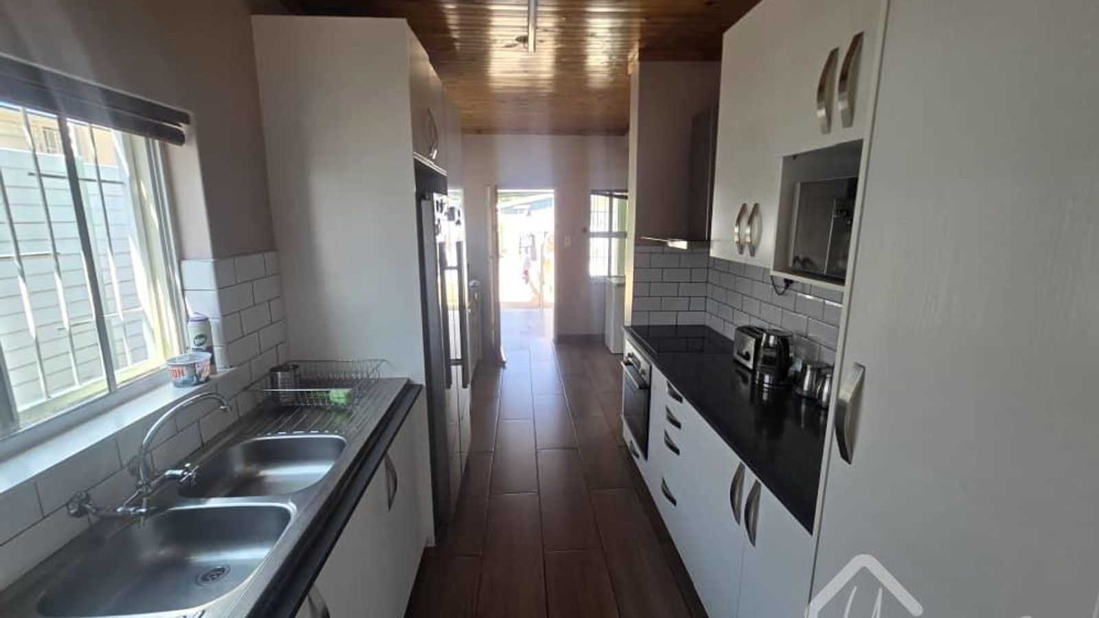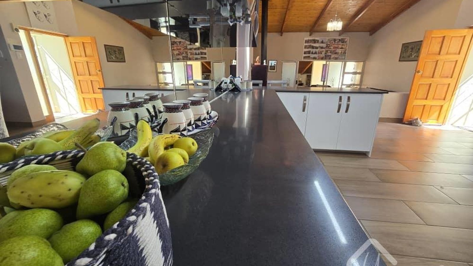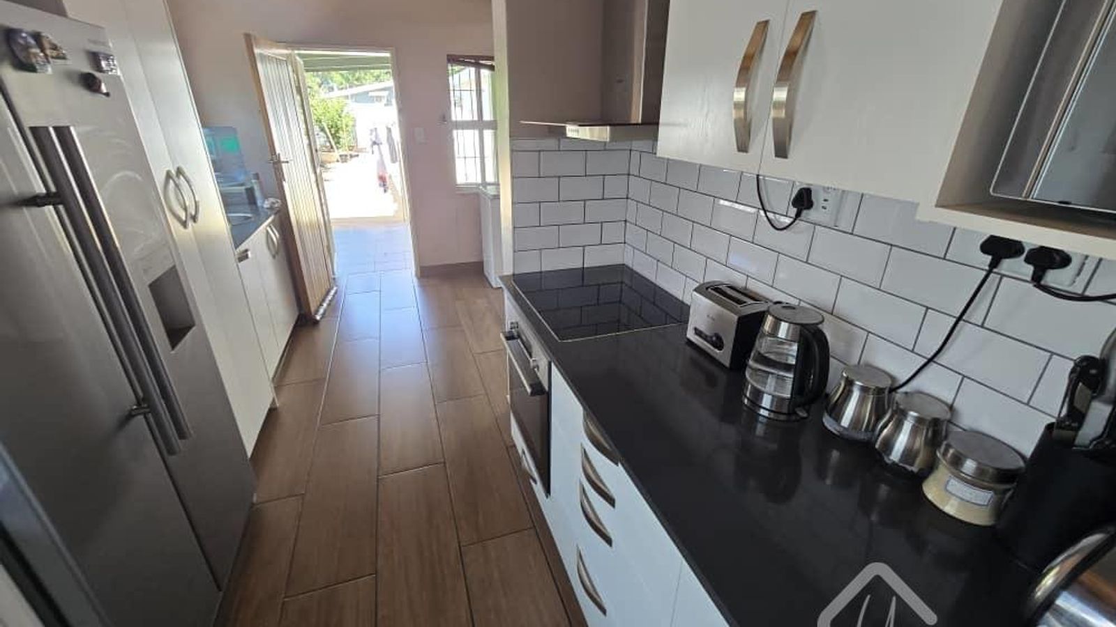 ✅Spacious open plan Kitchen and Scullery with ample build in cupboards, a build in stove and space for a double door fridge