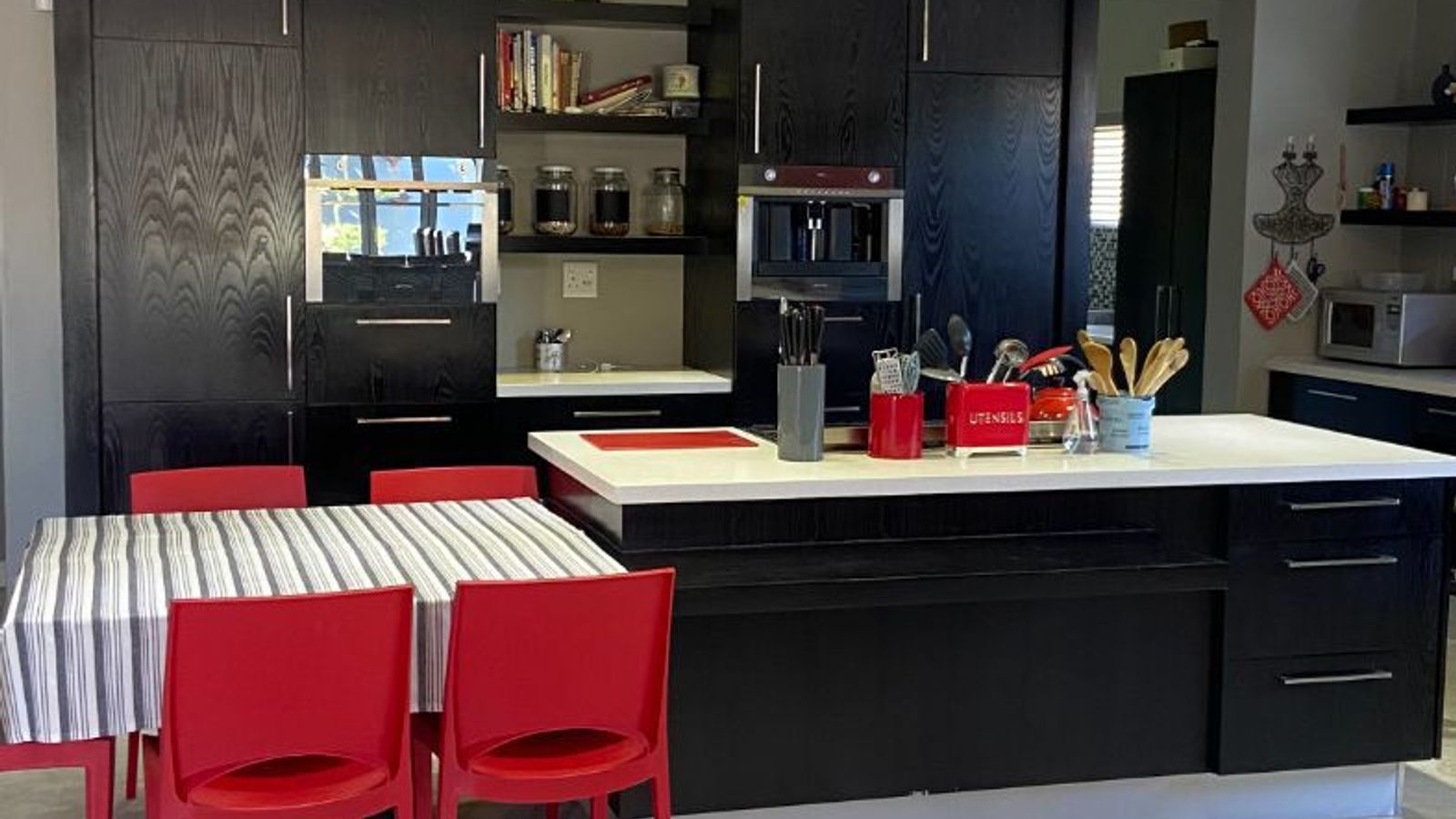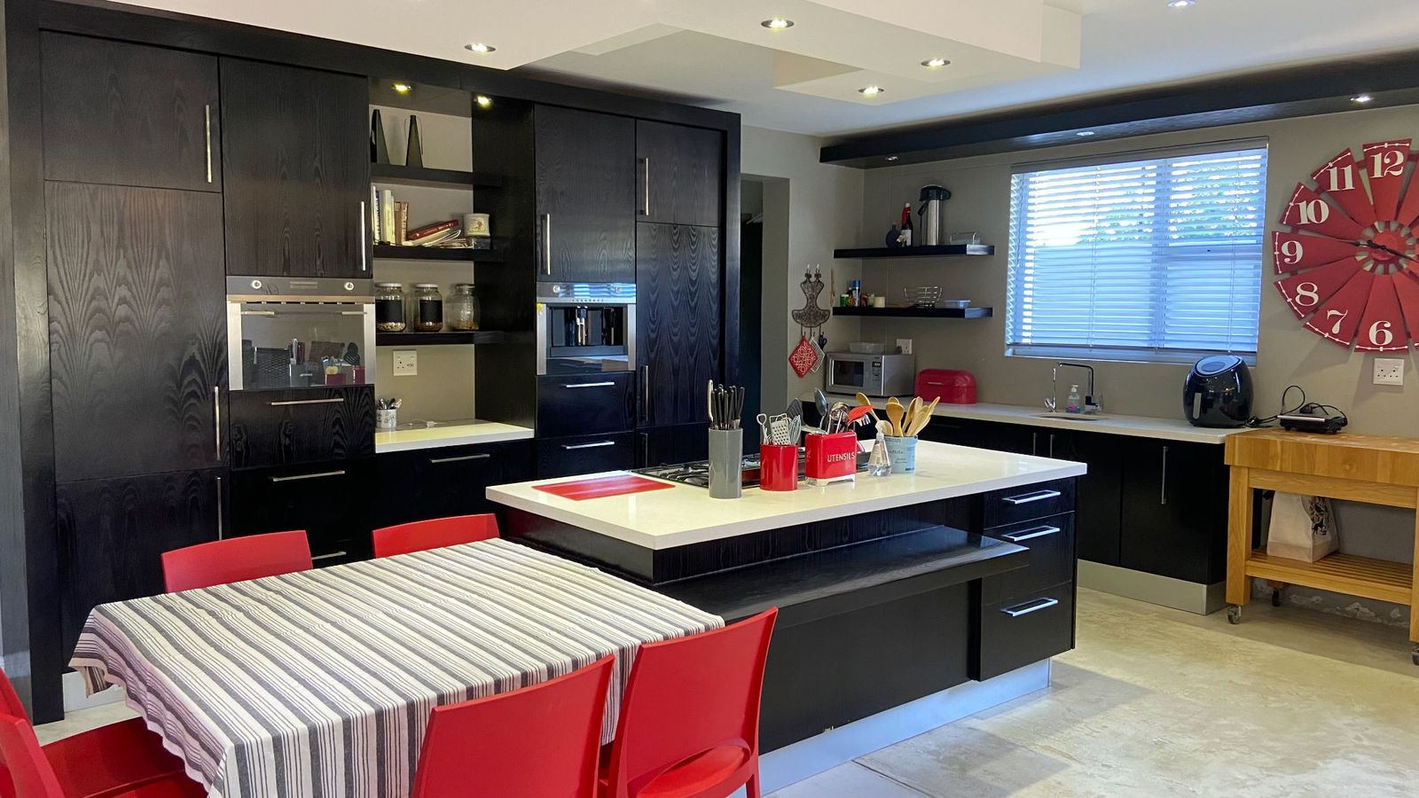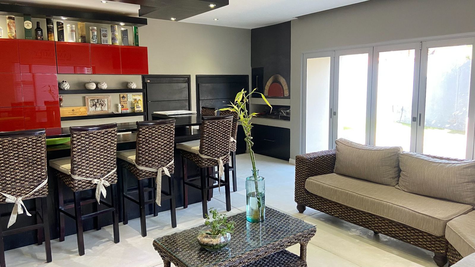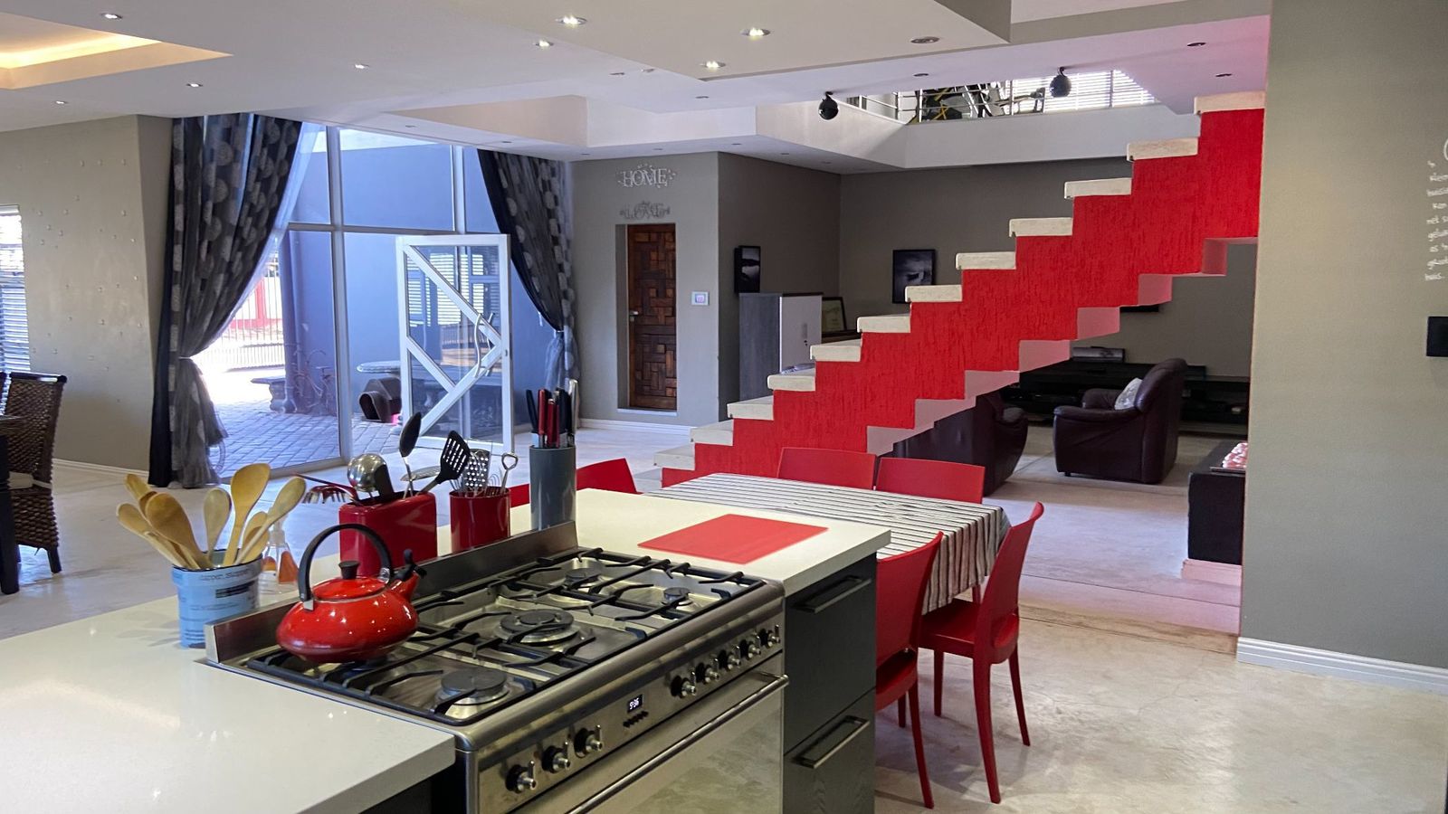 Huge property under roof on a big erf. Can be ideal for larger families. Downstairs living area offering modern kitchen with fitted appliances , scullery and big pantry. Dinging area. Entertainment area with bar, two BBQ's and pizza oven. Stacking doors leading out to swimming pool.