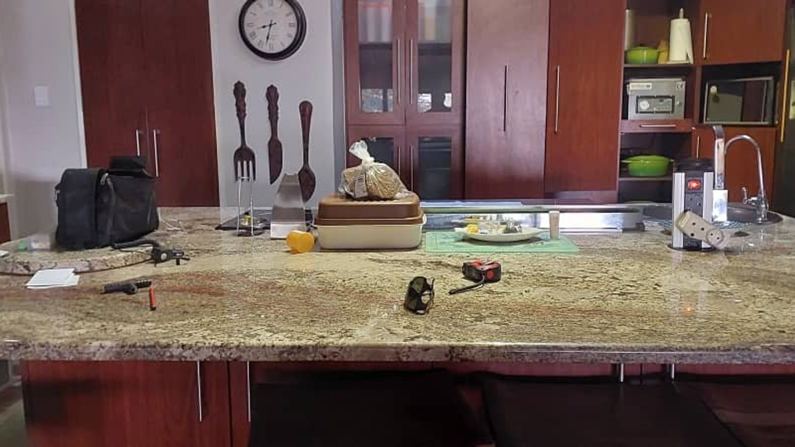 Inside the main dwelling, you will find an inviting entrance foyer leading to a lounge and dining room with a cozy fireplace. The well-appointed kitchen features built-in cupboards and a gas stove, accompanied by a scullery, pantry, laundry room, storeroom, walk-in safe, gym, cooler room, and an entertainment/bar area. The residence offers three spacious bedrooms with built-in cupboards and three well-designed bathrooms.