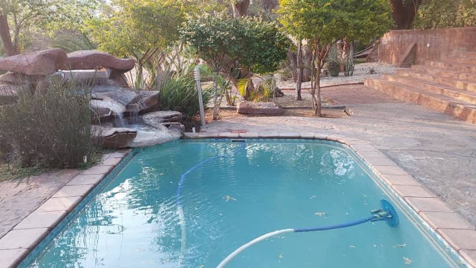 Welcome to an extraordinary property offering a sprawling 25,000 square meters of land, securely enclosed by a 2.1-meter high electrified fence, ensuring privacy and safety. This expansive estate is equipped with both solar and NamPower electricity, ensuring a reliable power supply. Water needs are efficiently met through a municipal connection and four boreholes with electric submersible pumps, complemented by three 5,000-liter plastic water tanks.