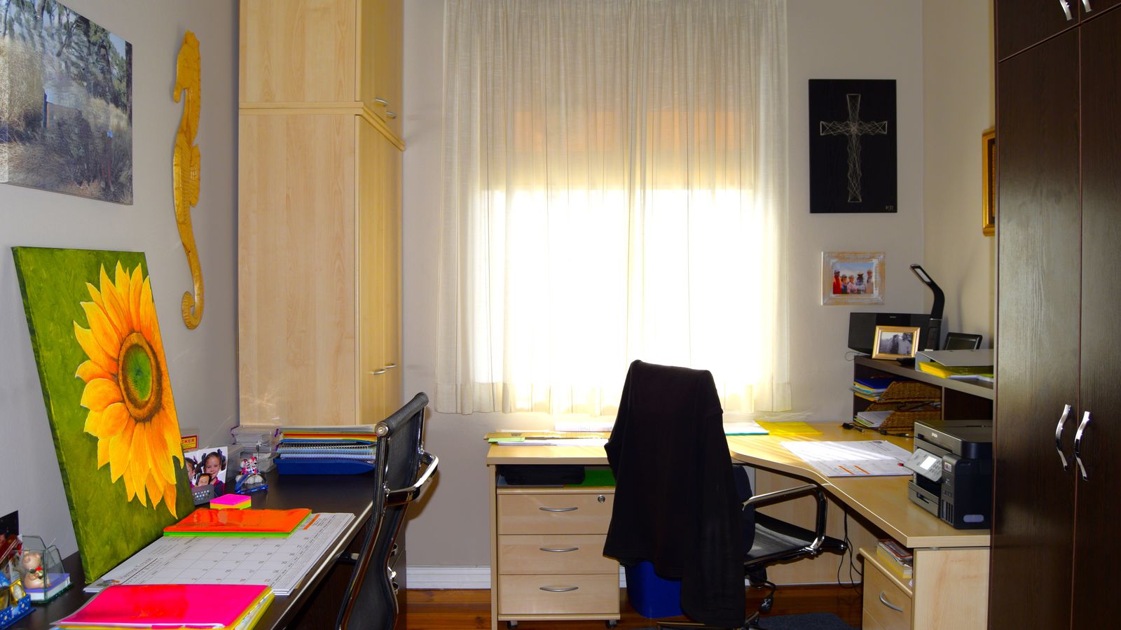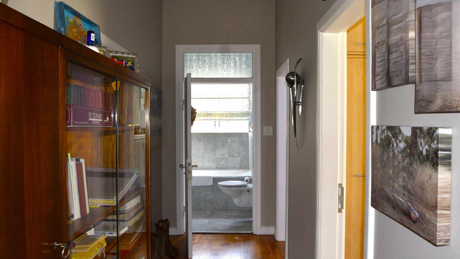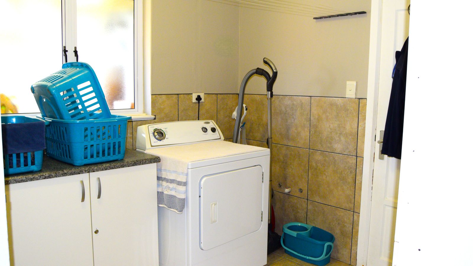 Further along, a well-organized utility section includes a large single garage, a storeroom, and a laundry room with additional storage. An outdoor toilet adds further convenience.