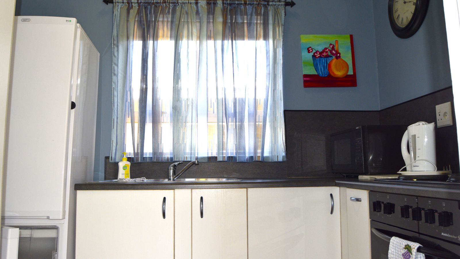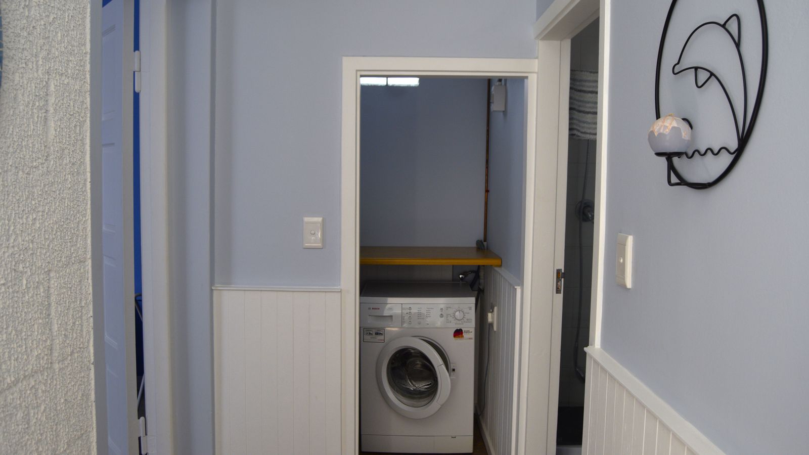 The third flatlet, positioned on the right wing, features a spacious open-plan living area with a fully fitted kitchen, a compact laundry section, and a private patio overlooking the gardens. This makes it an ideal choice for extended-stay guests or an owner’s private retreat.