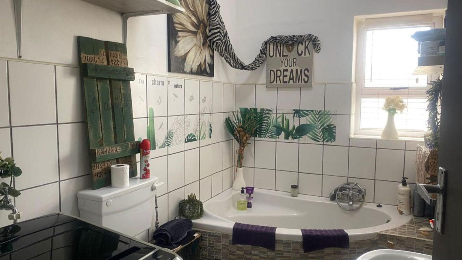 Flat 1: Open-plan lounge and kitchen, two bedrooms, a shower/bath/basin, a separate WC, and a small courtyard—great for additional tenants or guest accommodation.