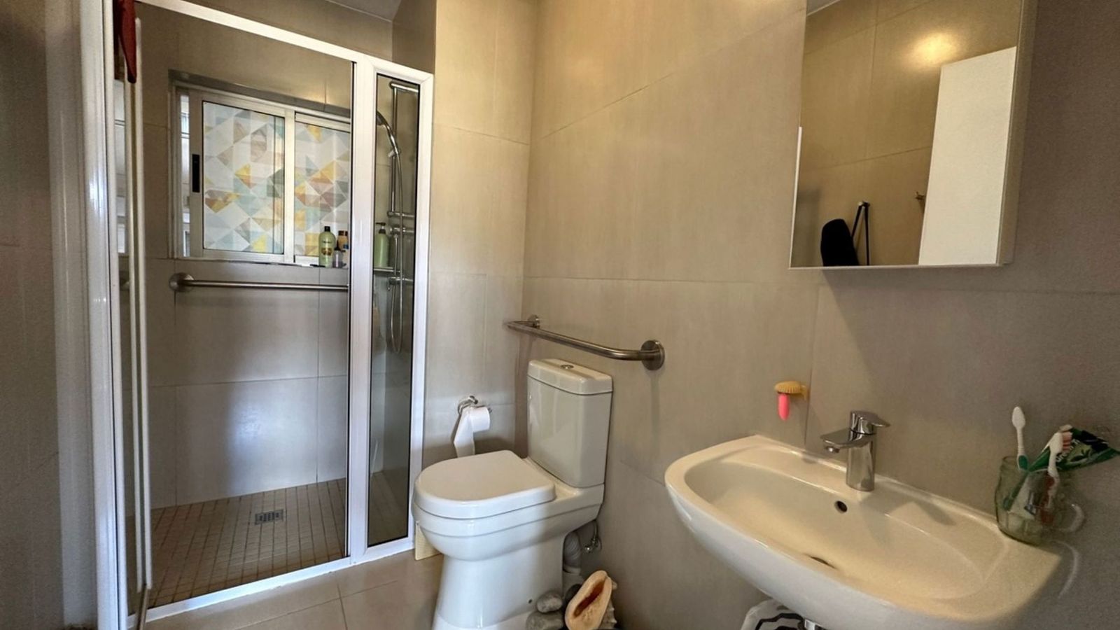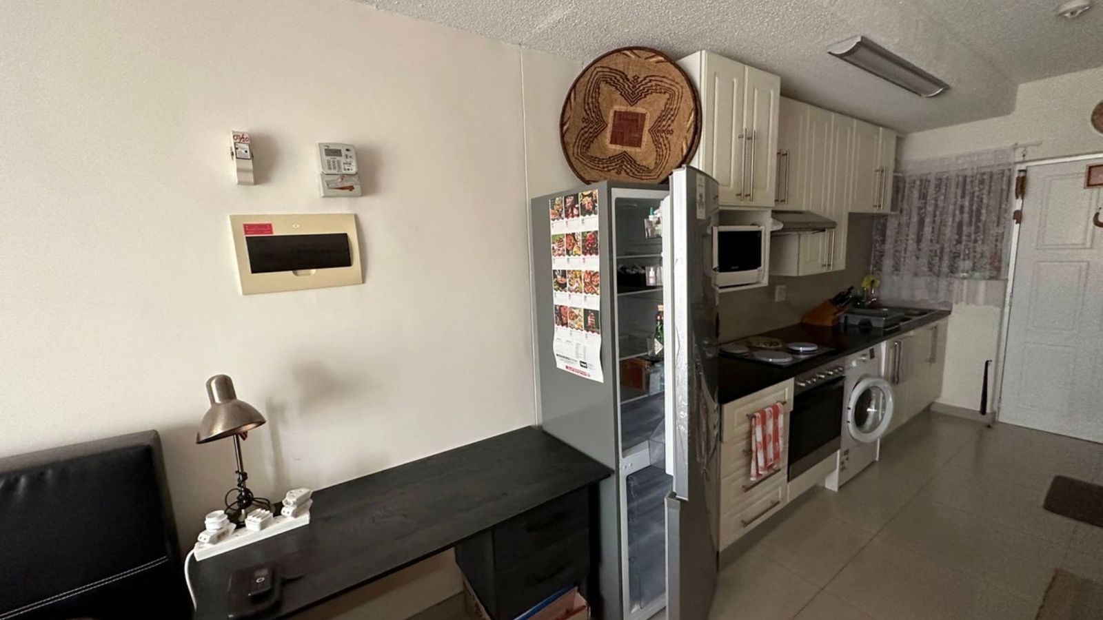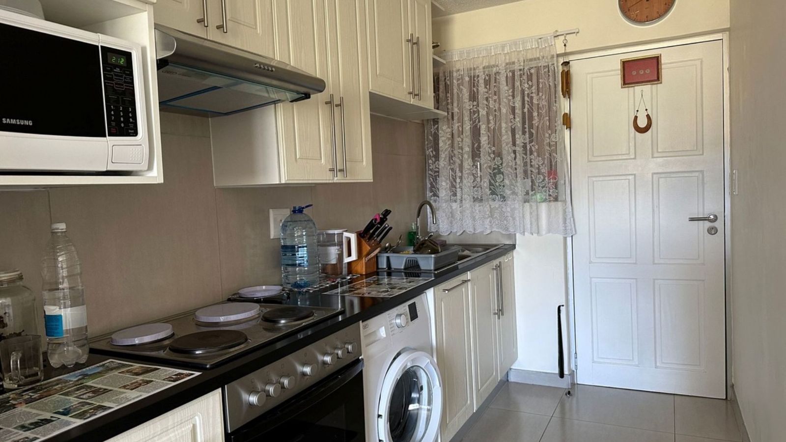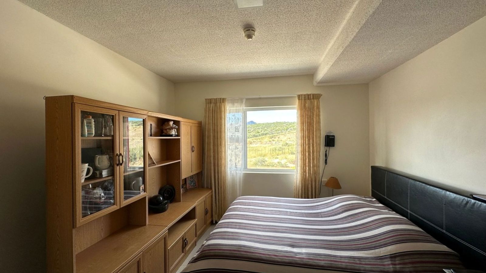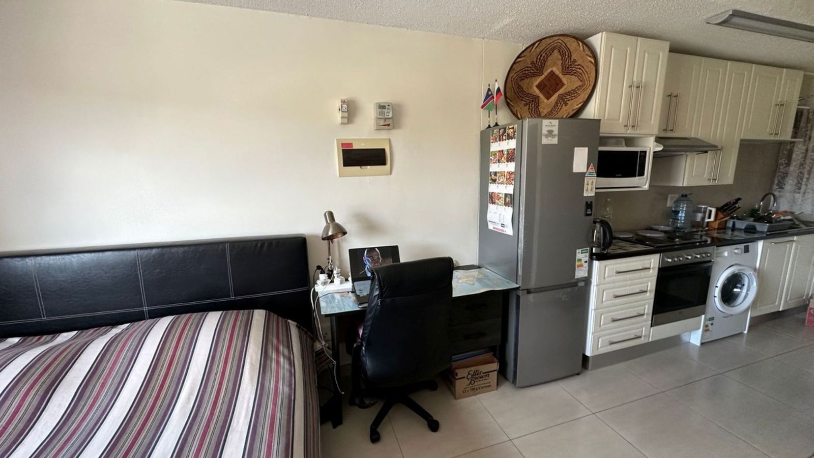 Bachelor unit with open-plan kitchen and living area. One large bathroom with a shower, basin and toilet. Kitchen with BIC and a built-in oven and hob. Convenient, very good layout, and minimalist. The kitchen has ample space for a fridge and washing machine. minimalist. Underground parking. Flat size: 28 sqm. 24 hour security. Very beautiful view of the Auas Mountains. OTHER amenities include: Khomas Medical Centre, family Care Pharmacy, Auashills Dental, Chiropractor and a Coffee Shop