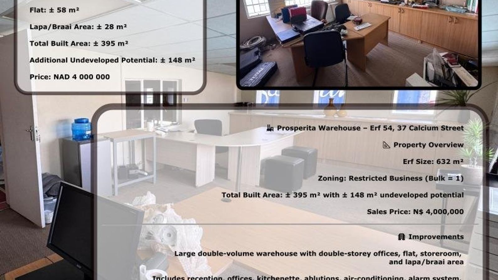 • ±114m² office area with reception, offices, kitchenette & ablutions