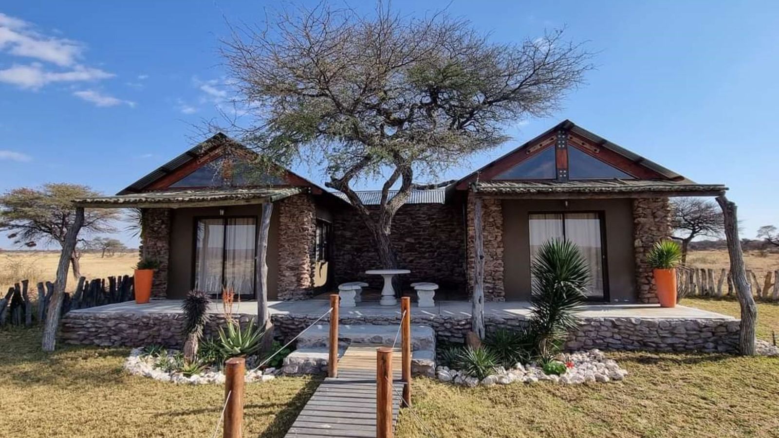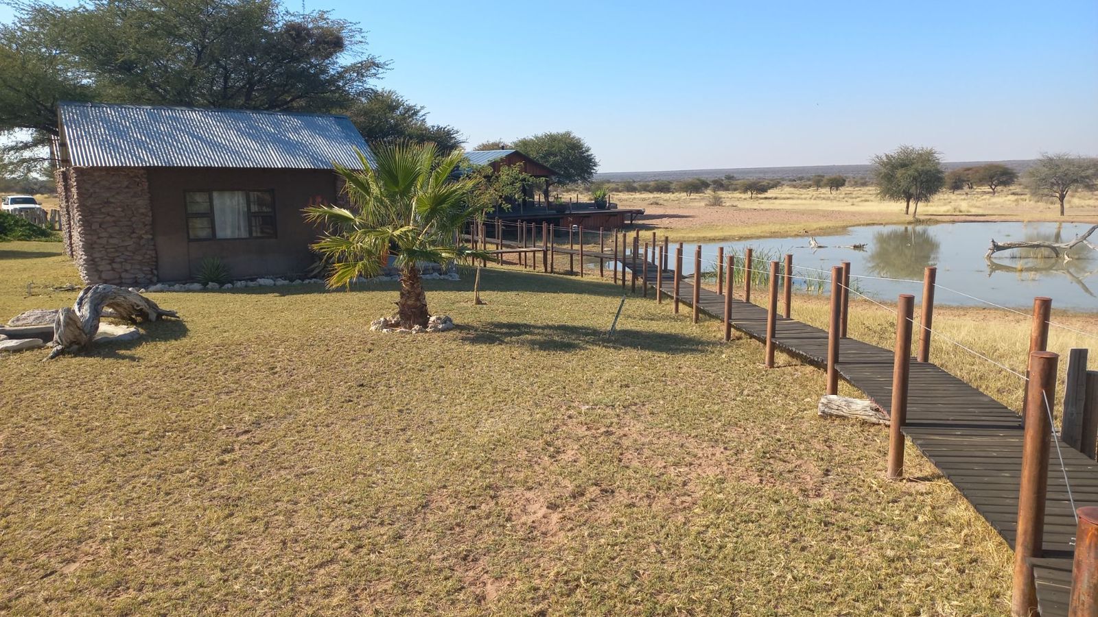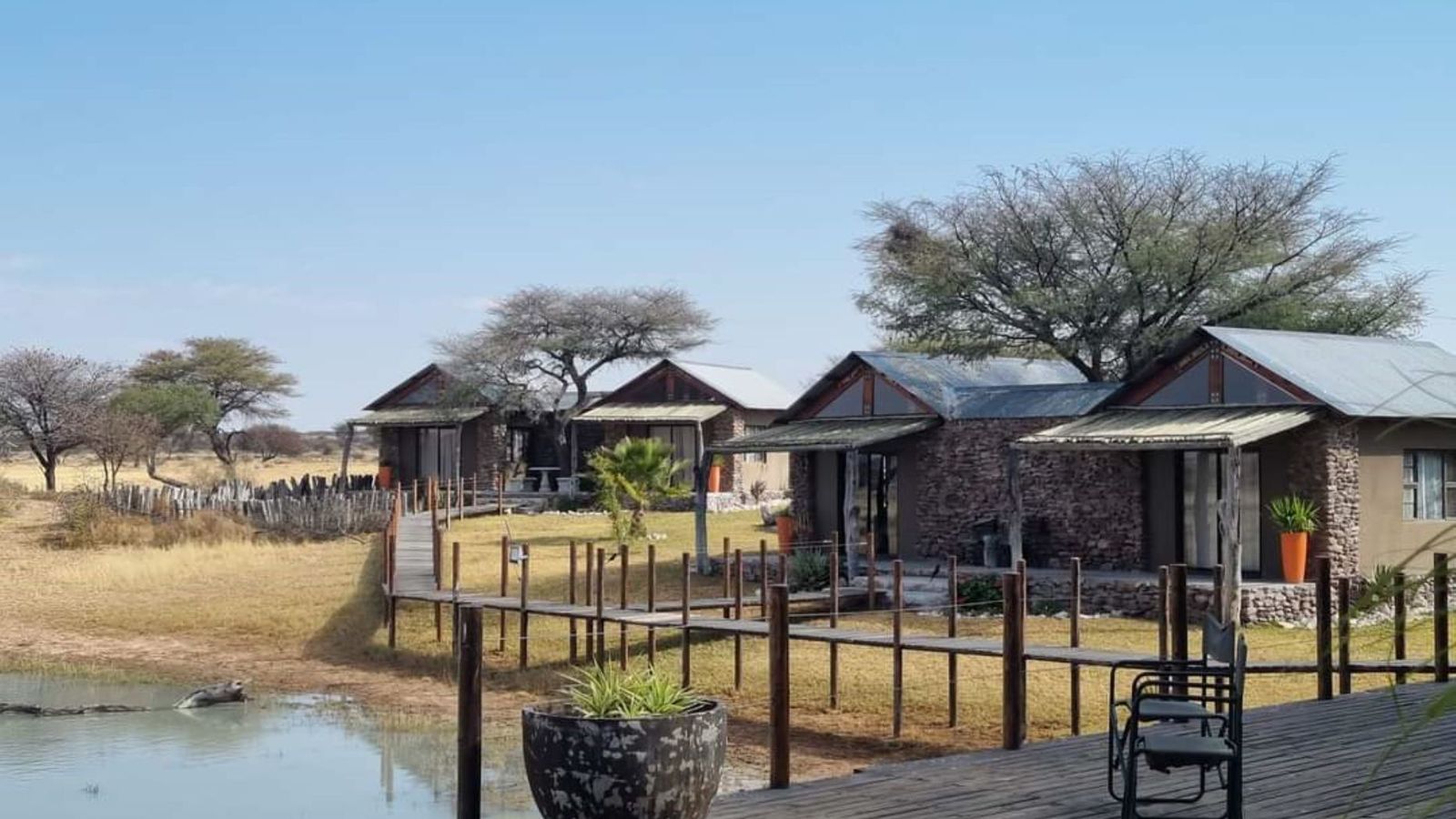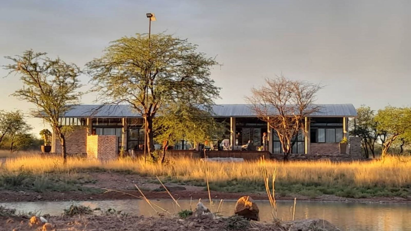 Beautiful guest lodge accommodation surrounding a natural water hole with self-catering facilities, swimming pool, braai and well-maintained garden.