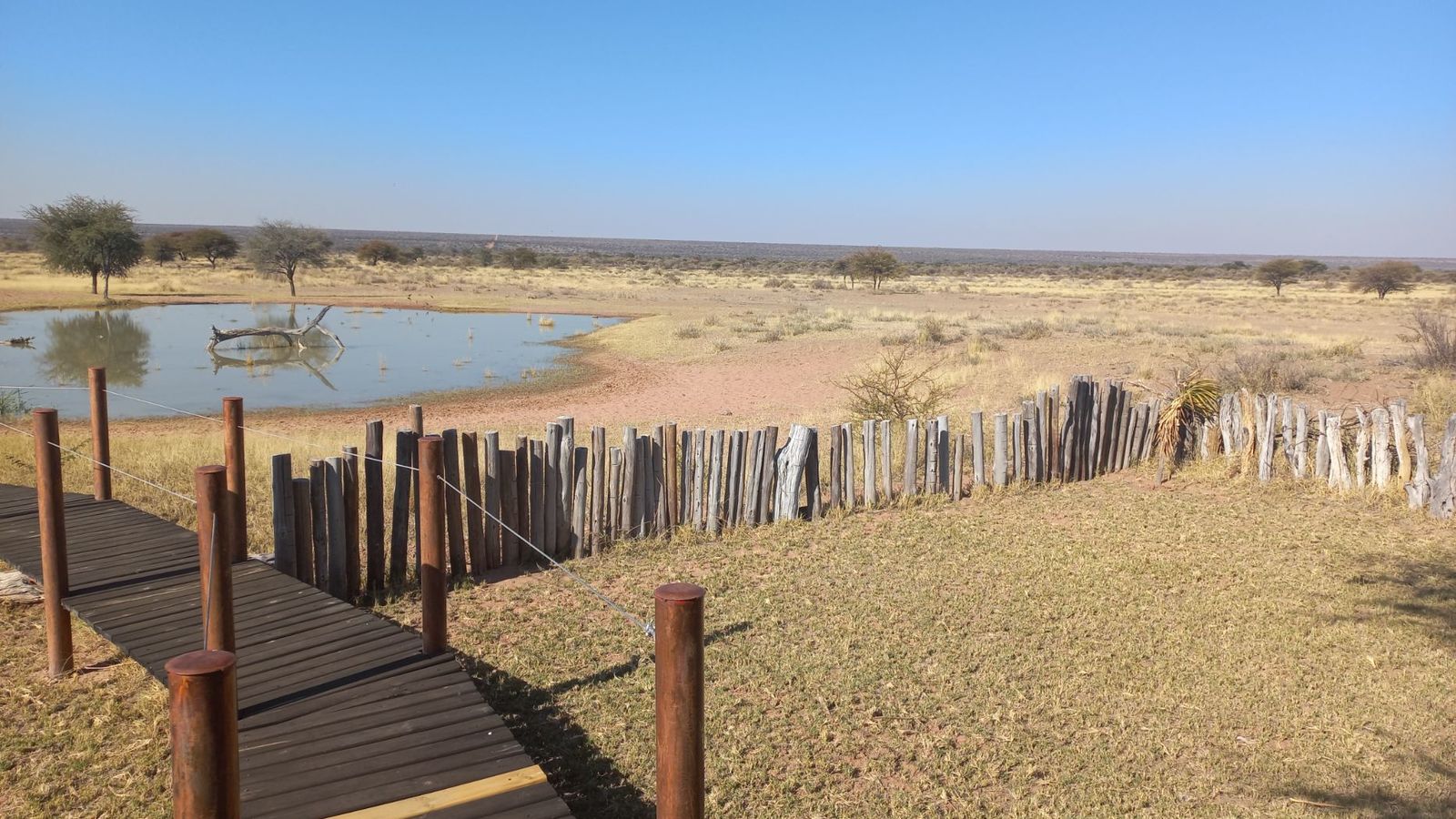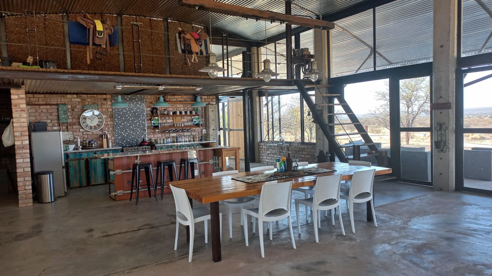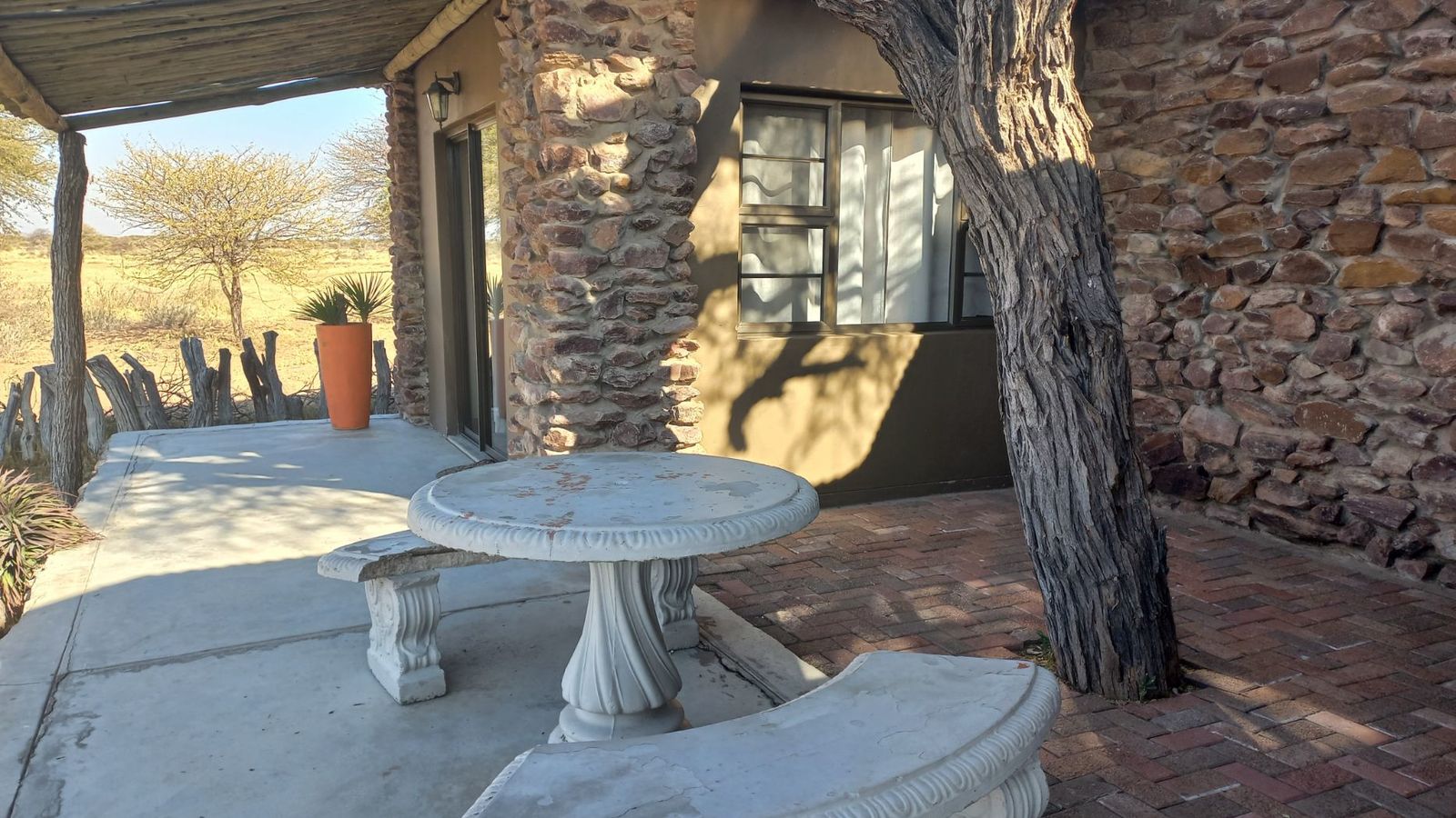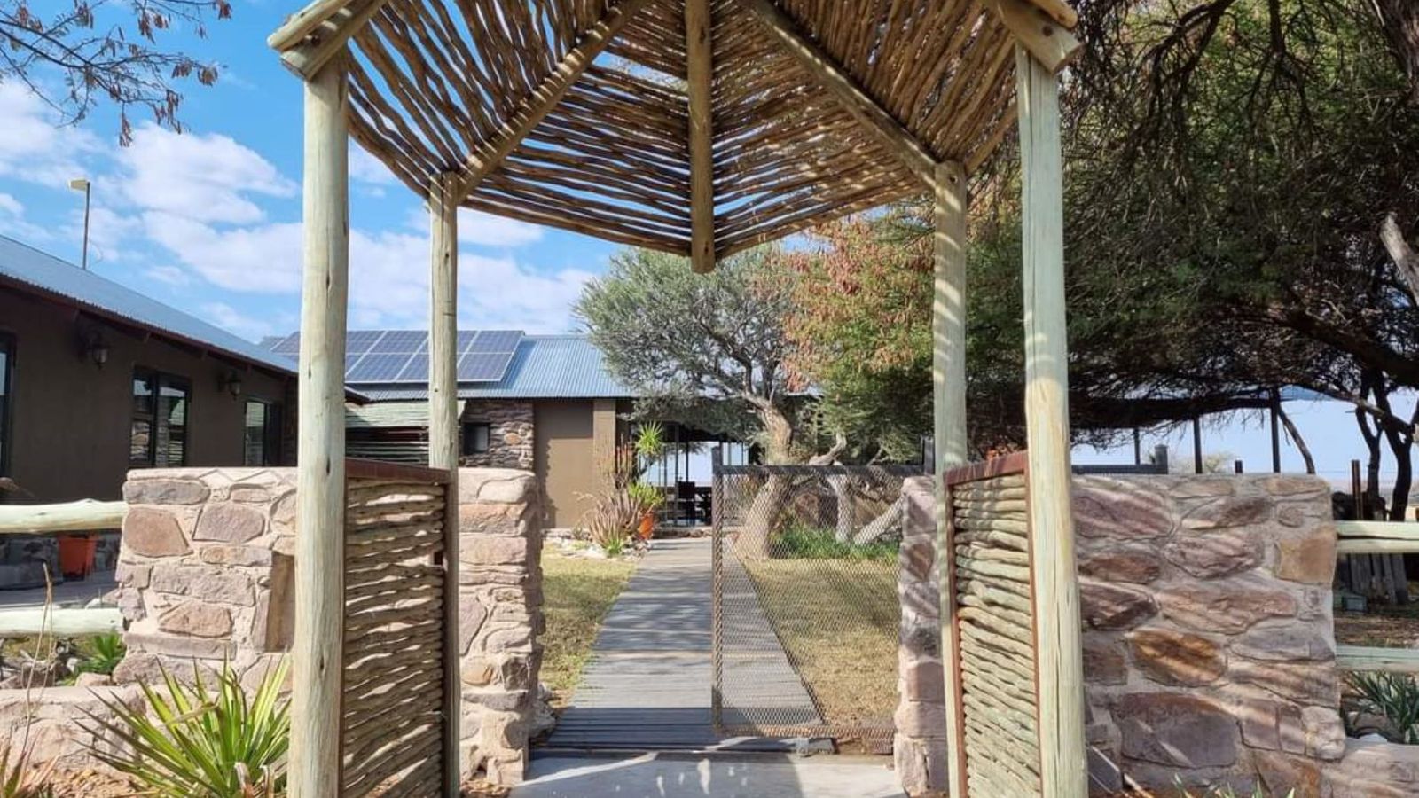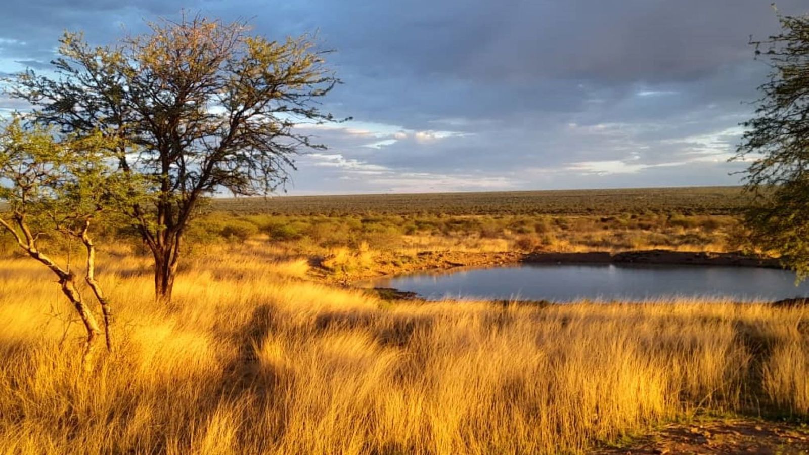 Beautiful guest lodge accommodation surrounding a natural water hole with self-catering facilities, swimming pool, braai and well-maintained garden.