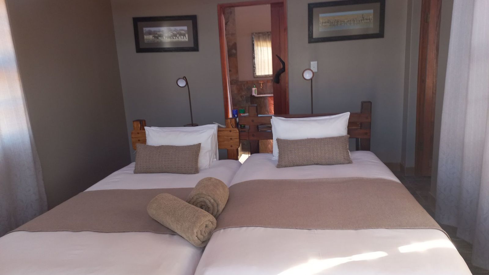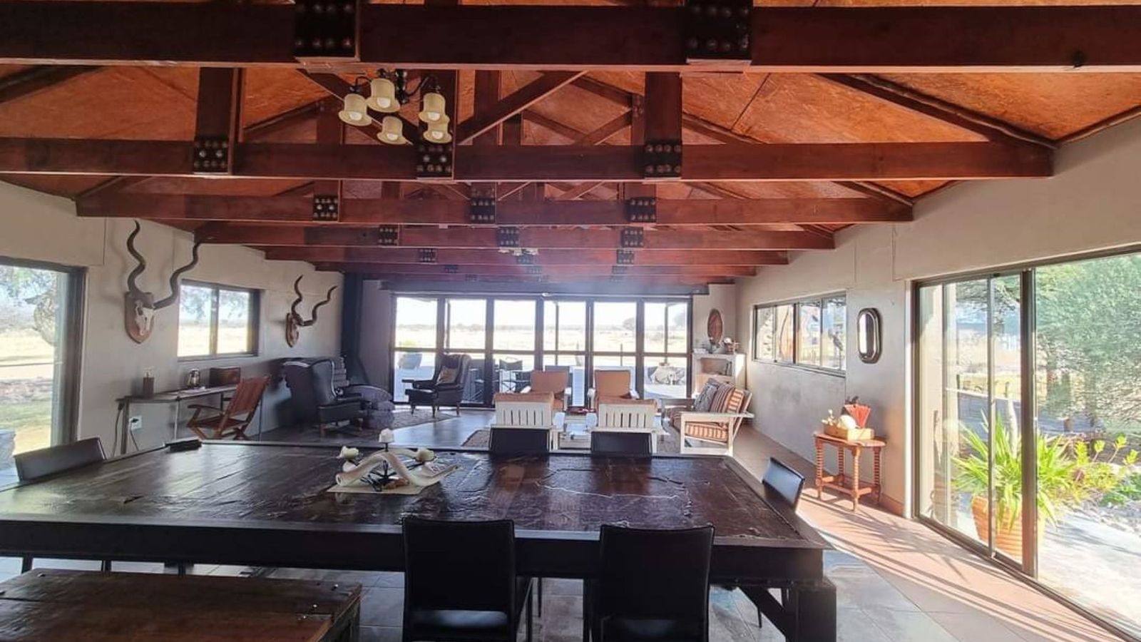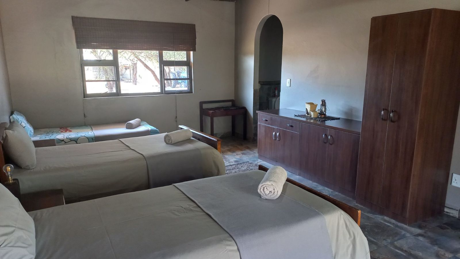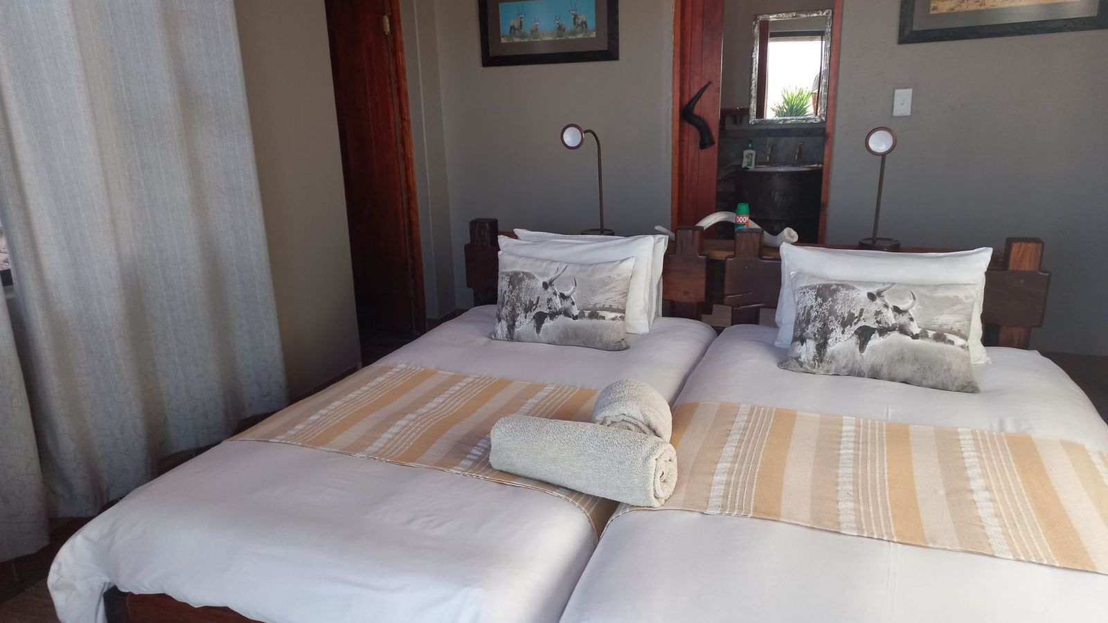 Beautiful guest lodge accommodation surrounding a natural water hole with self-catering facilities, swimming pool, braai and well-maintained garden.