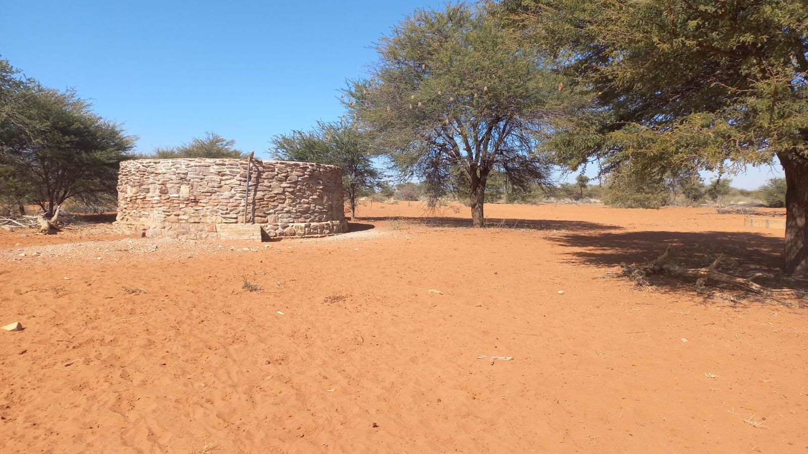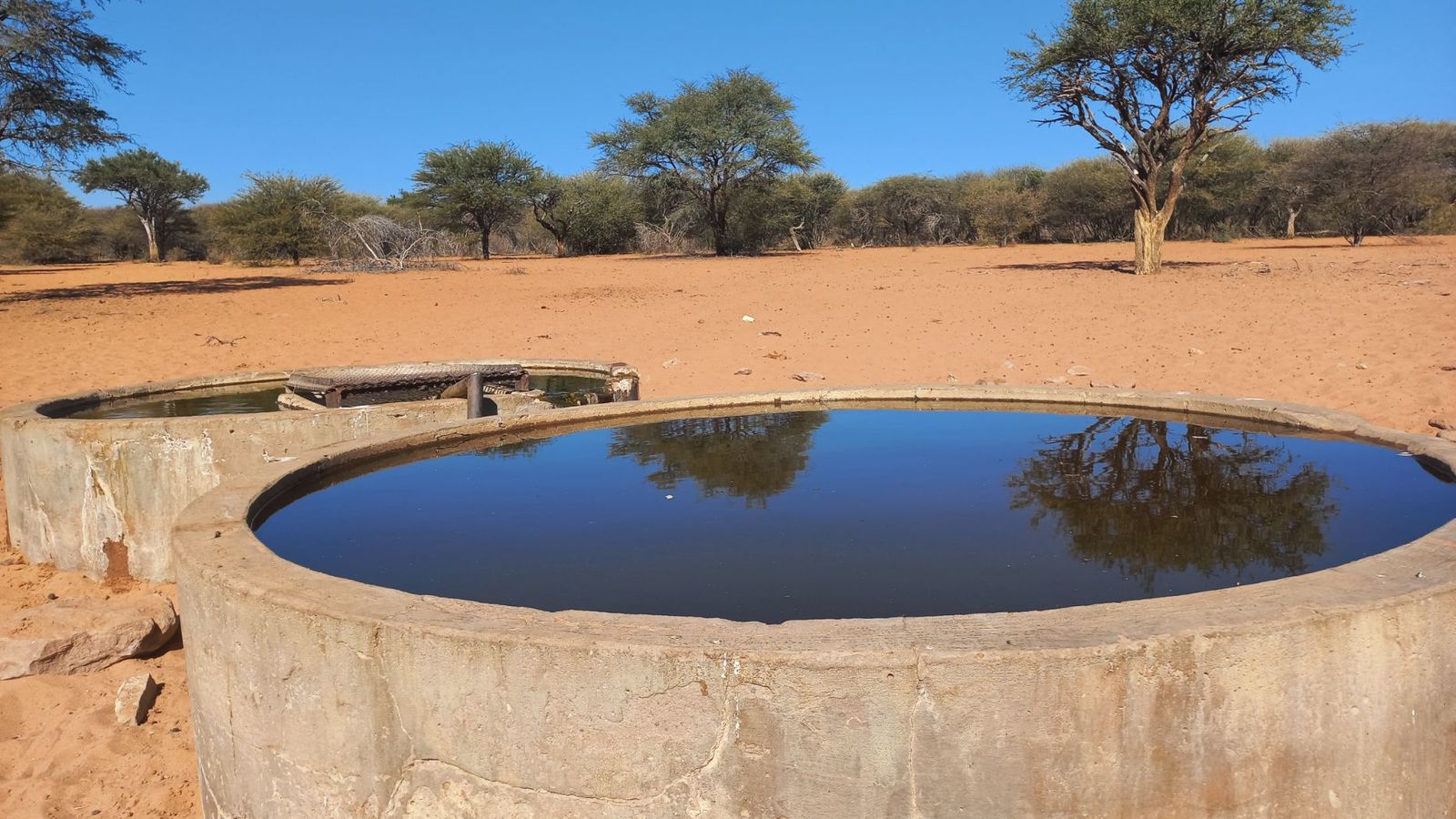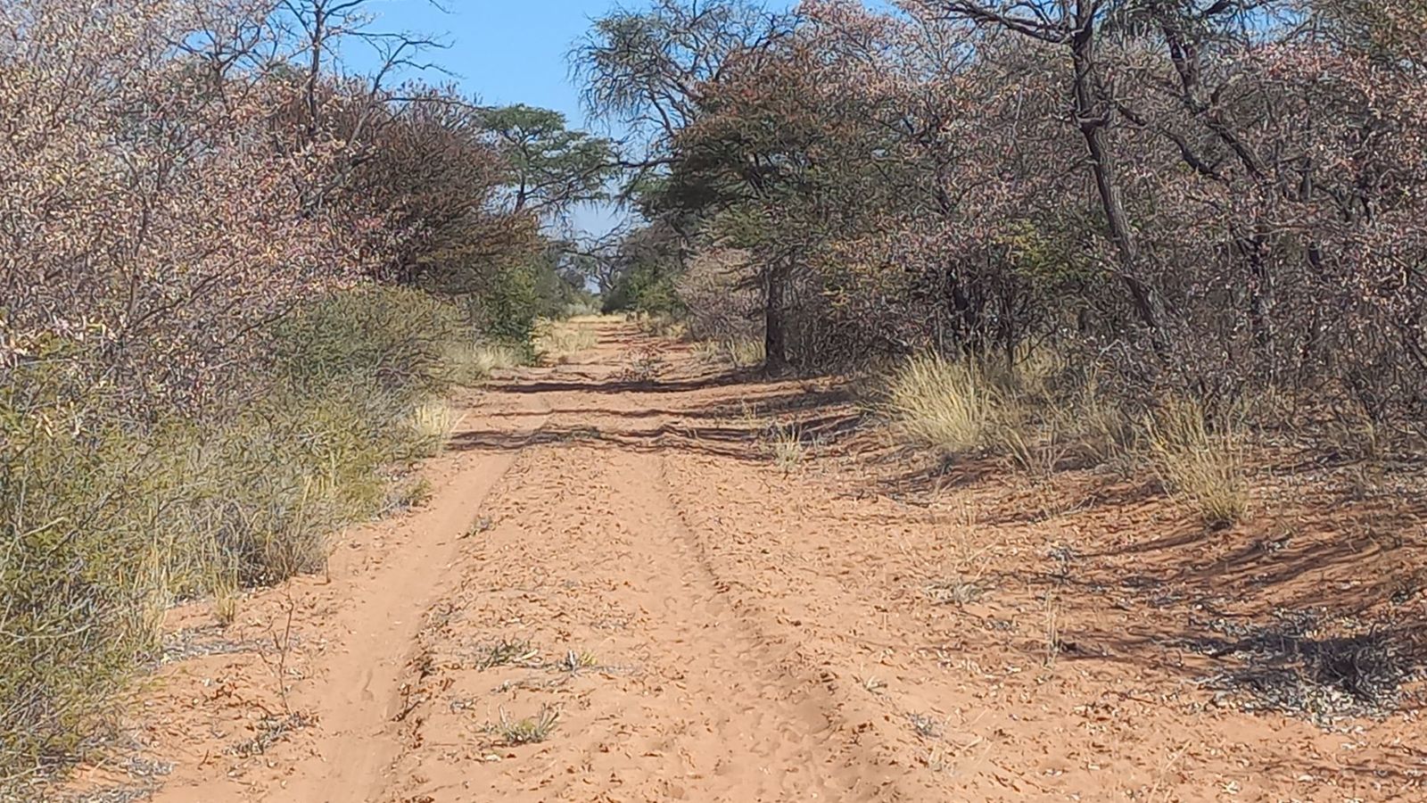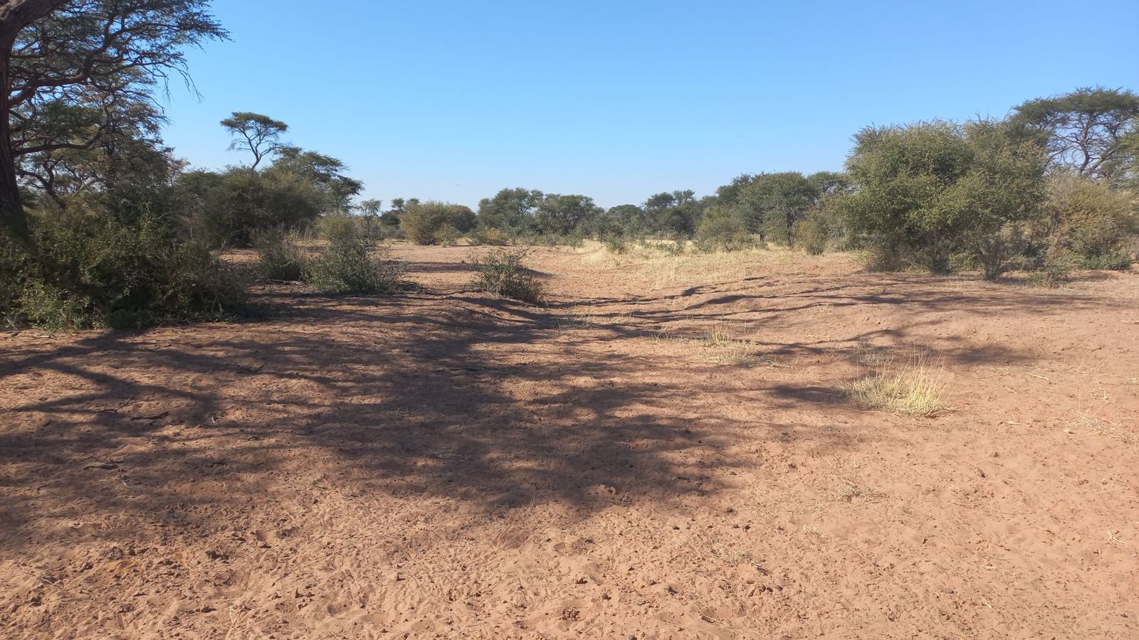 Typical African Savana vegetation ranging from sand dunes, dry river-beds, with large acacia trees and some rocky outcrops.