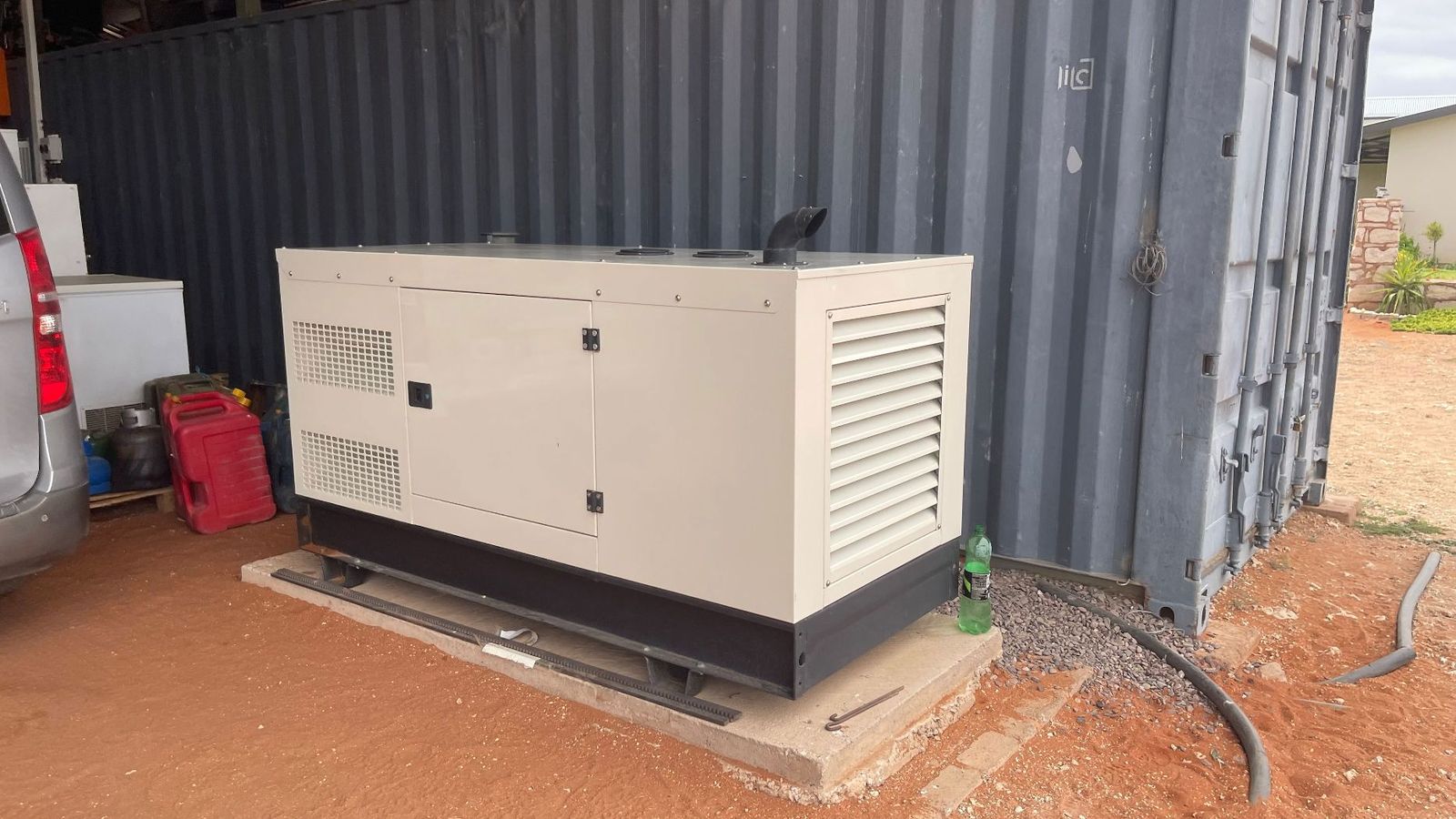 Solar electricity with 16 KVA SunSyink solar system, mobile app connectivity, FAW generator for backup supply 22 KVA, starts automatically by use of system.