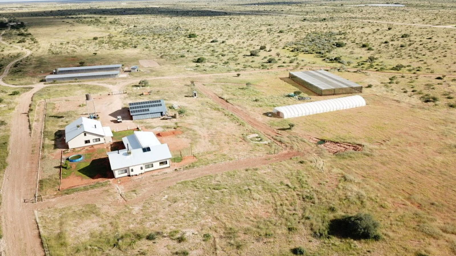 Newly developed smallholding of 30 hectares. There are 2 houses. House 1: Size 378 m2, 4 en-suite bedrooms, spacious kitchen, scullery/laundry, open plan living area, dining, indoor entertainment with BBQ, study, double garage, covered patio. House 2: 212 m2, 2 en-suite bedrooms, spacious kitchen, scullery, laundry, open plan living area, dining, study, double garage.