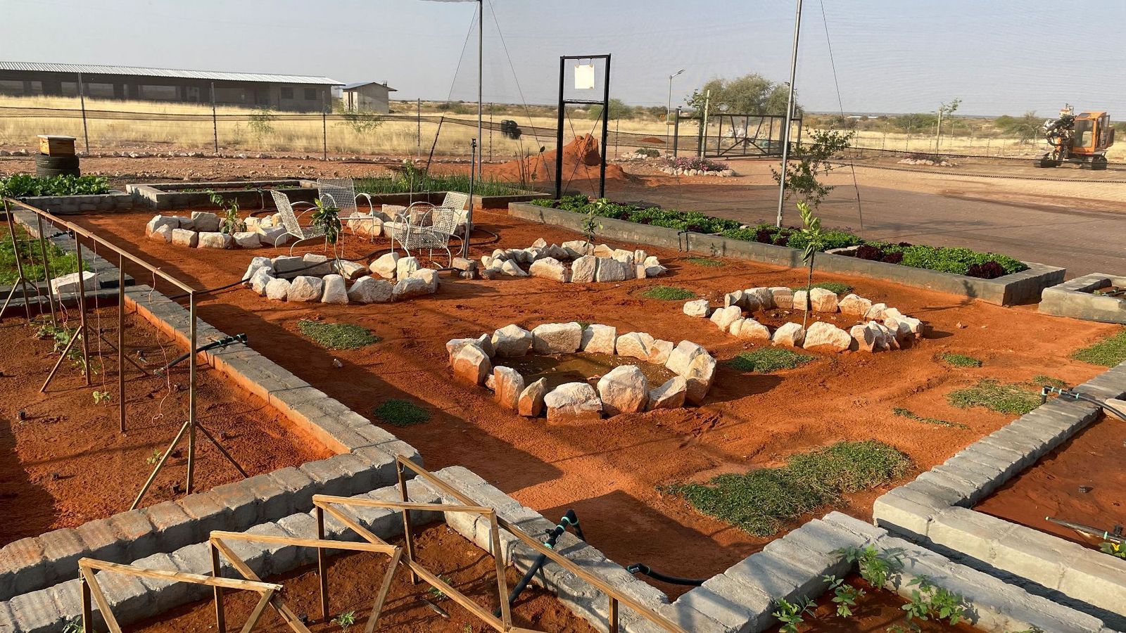 Net structure of 24 m x 48 m (currently growing beans, beetroot, onions and carrots)