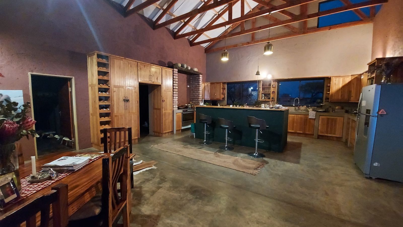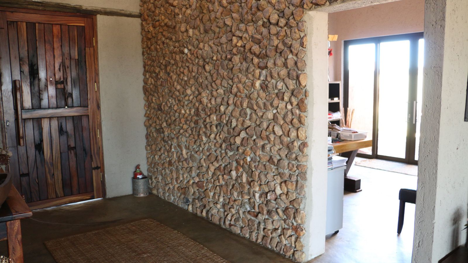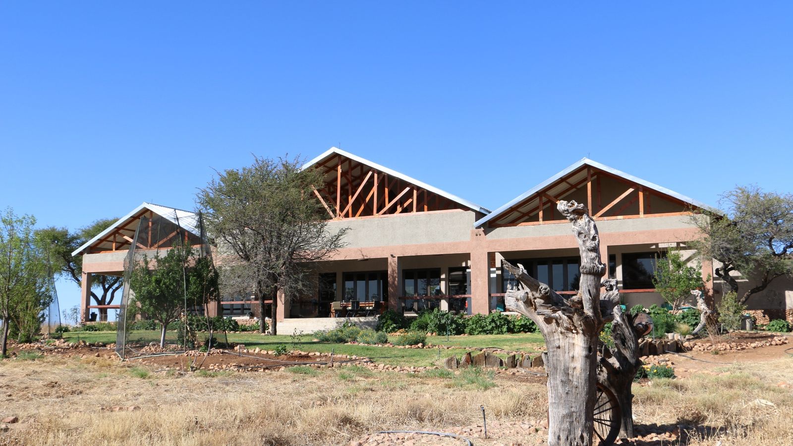 If you are dreaming of living a self-sustaining, off the grid lifestyle in a safe and tranquil location, this property will make your dreams come true. Located in close proximity to Hosea Kutako International Airport on a Lifestyle Estate this property offers exceptional views and will connect you with the natural surroundings.The property is developed to be completely off the grid with it's own borehole, solar power system with inverter large enough to power all the appliances and equipment you will need. The main dwelling is a large farm style home offering spacious indoor and outdoor entertainment areas, two large ensuite bedrooms, a study, scullery and laundry. Both the bedrooms are open style with walk in dressing rooms and full bathrooms. The main bedroom has his and her bathrooms with sliding doors leading to a private garden with outside shower. Both bedrooms open onto the covered stoep with beautiful views connected to a large lush garden. The property has all the facilities you can dream of and include a bore hole with solar pump, solar power system with 7KVA inverter, 35 000 liter water storage tanks, an outdoor kitchen, a chicken coupe, a large shed, a cold room, a 1 000 liter wood fired hot water geyser, workers accommodation, a vineyard and nursery. The commercial size nursery is 2500m2 in size, is covered for protection against the elements and nature and is watered through an automated hydroponic system. The property is CC registered and it's size allows for further development.