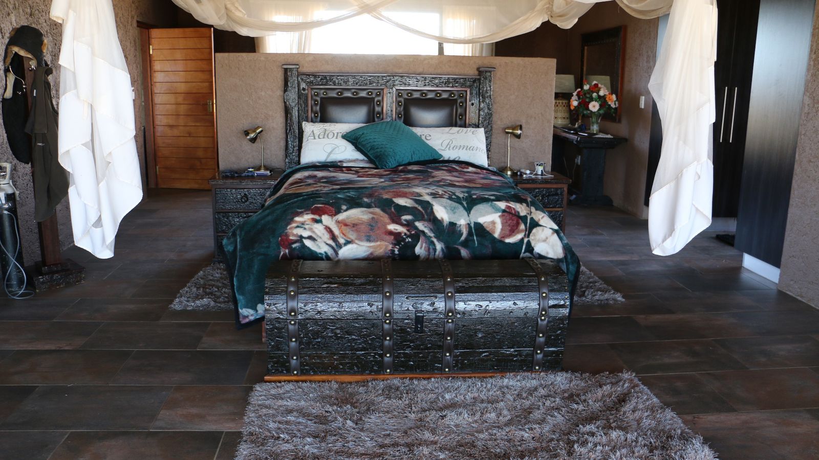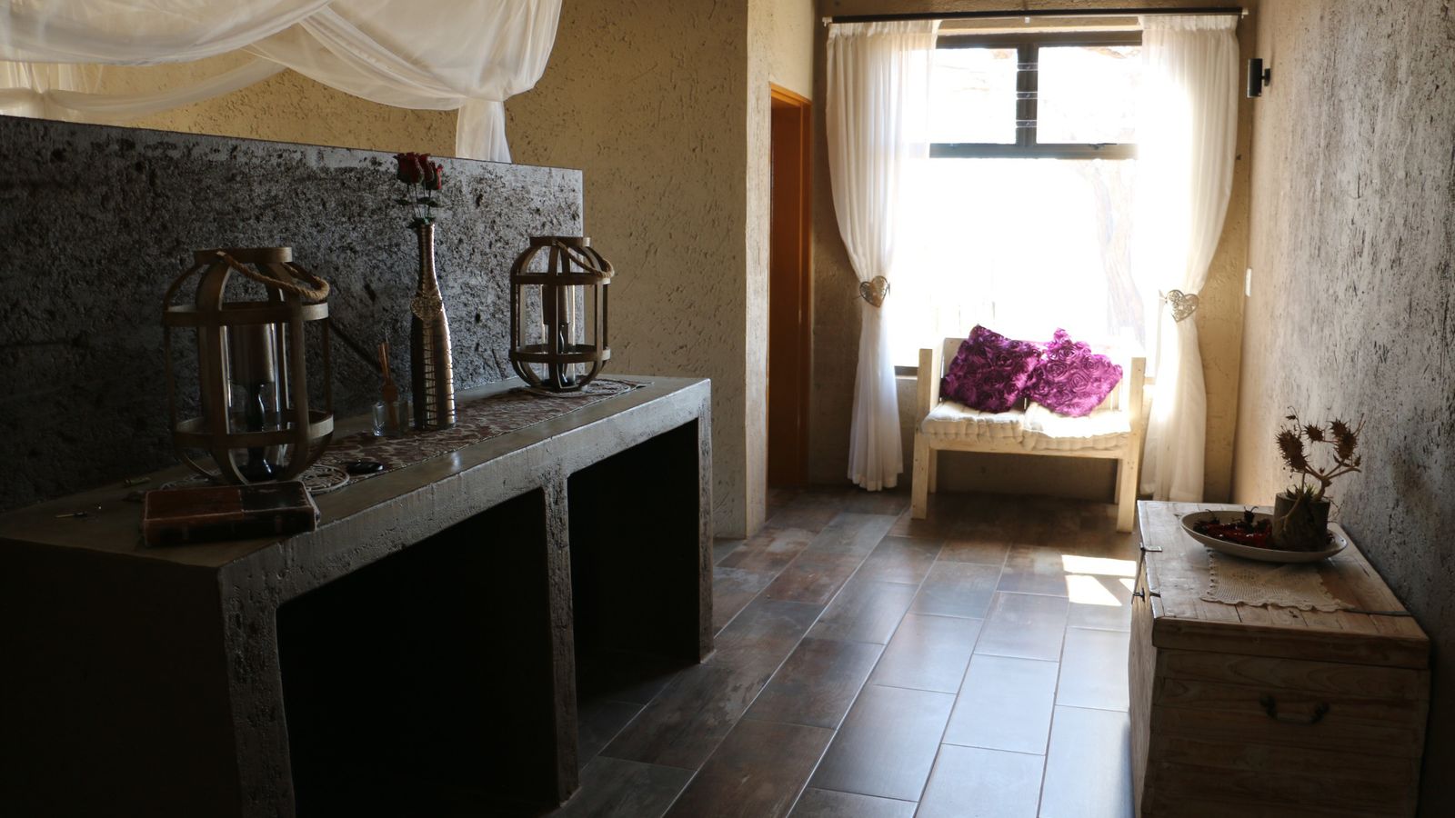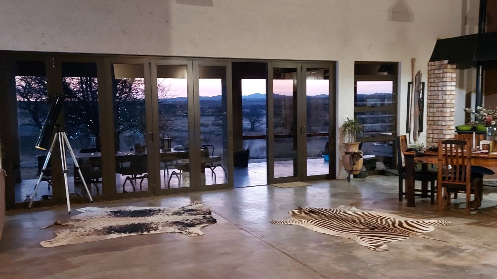 If you are dreaming of living a self-sustaining, off the grid lifestyle in a safe and tranquil location, this property will make your dreams come true. Located in close proximity to Hosea Kutako International Airport on a Lifestyle Estate this property offers exceptional views and will connect you with the natural surroundings.The property is developed to be completely off the grid with it's own borehole, solar power system with inverter large enough to power all the appliances and equipment you will need. The main dwelling is a large farm style home offering spacious indoor and outdoor entertainment areas, two large ensuite bedrooms, a study, scullery and laundry. Both the bedrooms are open style with walk in dressing rooms and full bathrooms. The main bedroom has his and her bathrooms with sliding doors leading to a private garden with outside shower. Both bedrooms open onto the covered stoep with beautiful views connected to a large lush garden. The property has all the facilities you can dream of and include a bore hole with solar pump, solar power system with 7KVA inverter, 35 000 liter water storage tanks, an outdoor kitchen, a chicken coupe, a large shed, a cold room, a 1 000 liter wood fired hot water geyser, workers accommodation, a vineyard and nursery. The commercial size nursery is 2500m2 in size, is covered for protection against the elements and nature and is watered through an automated hydroponic system. The property is CC registered and it's size allows for further development.