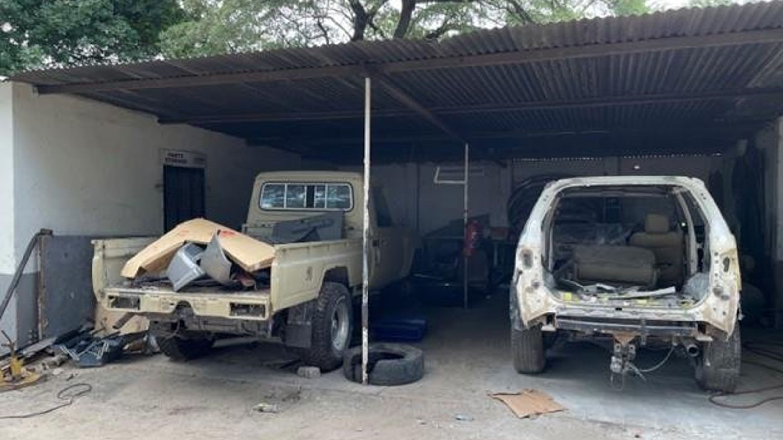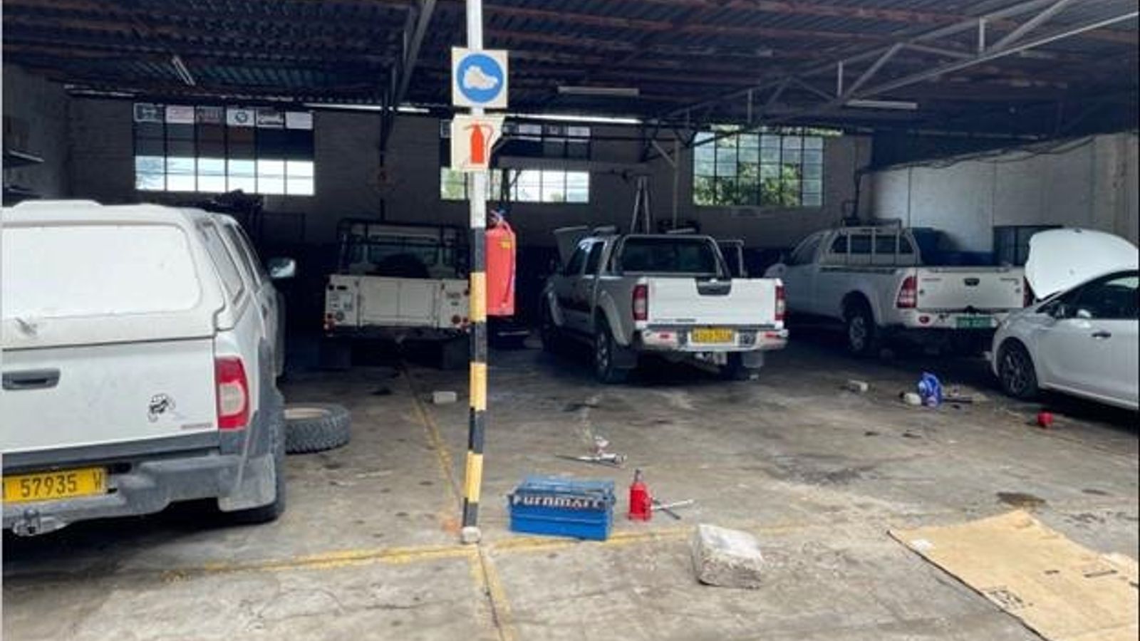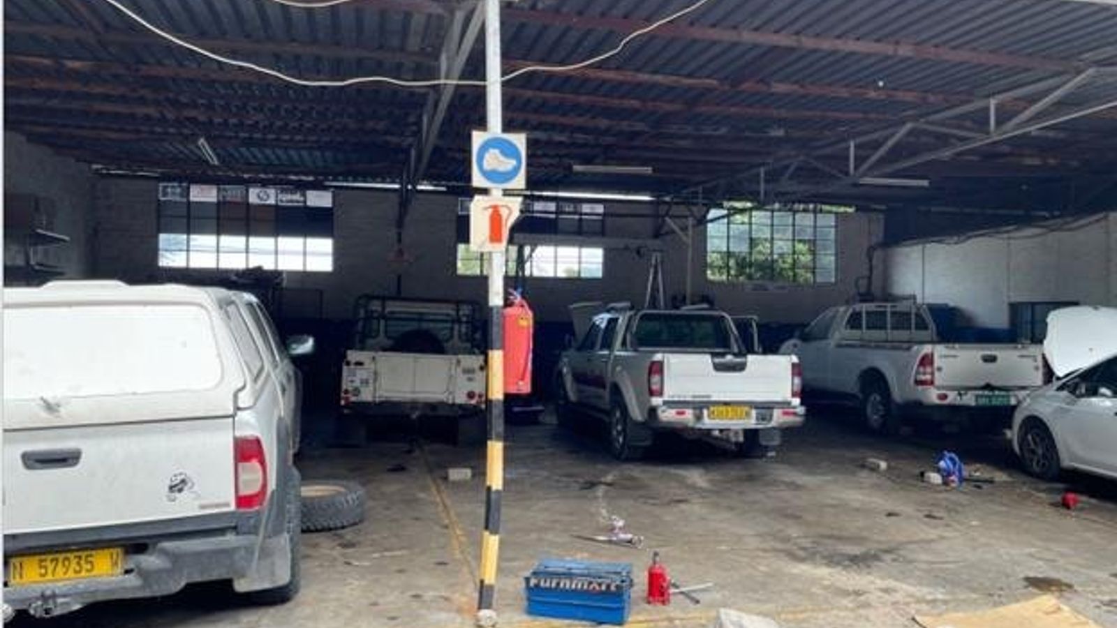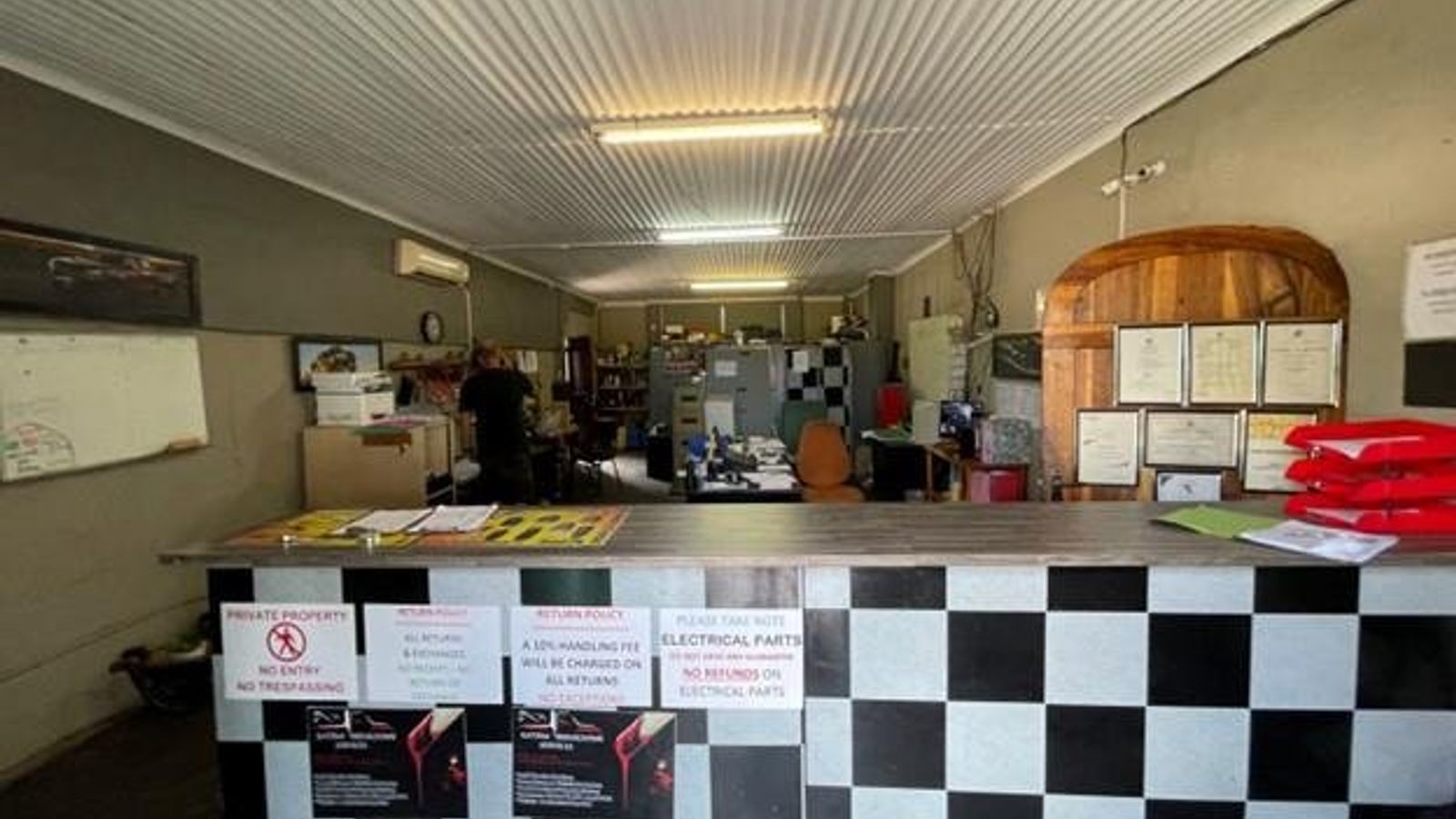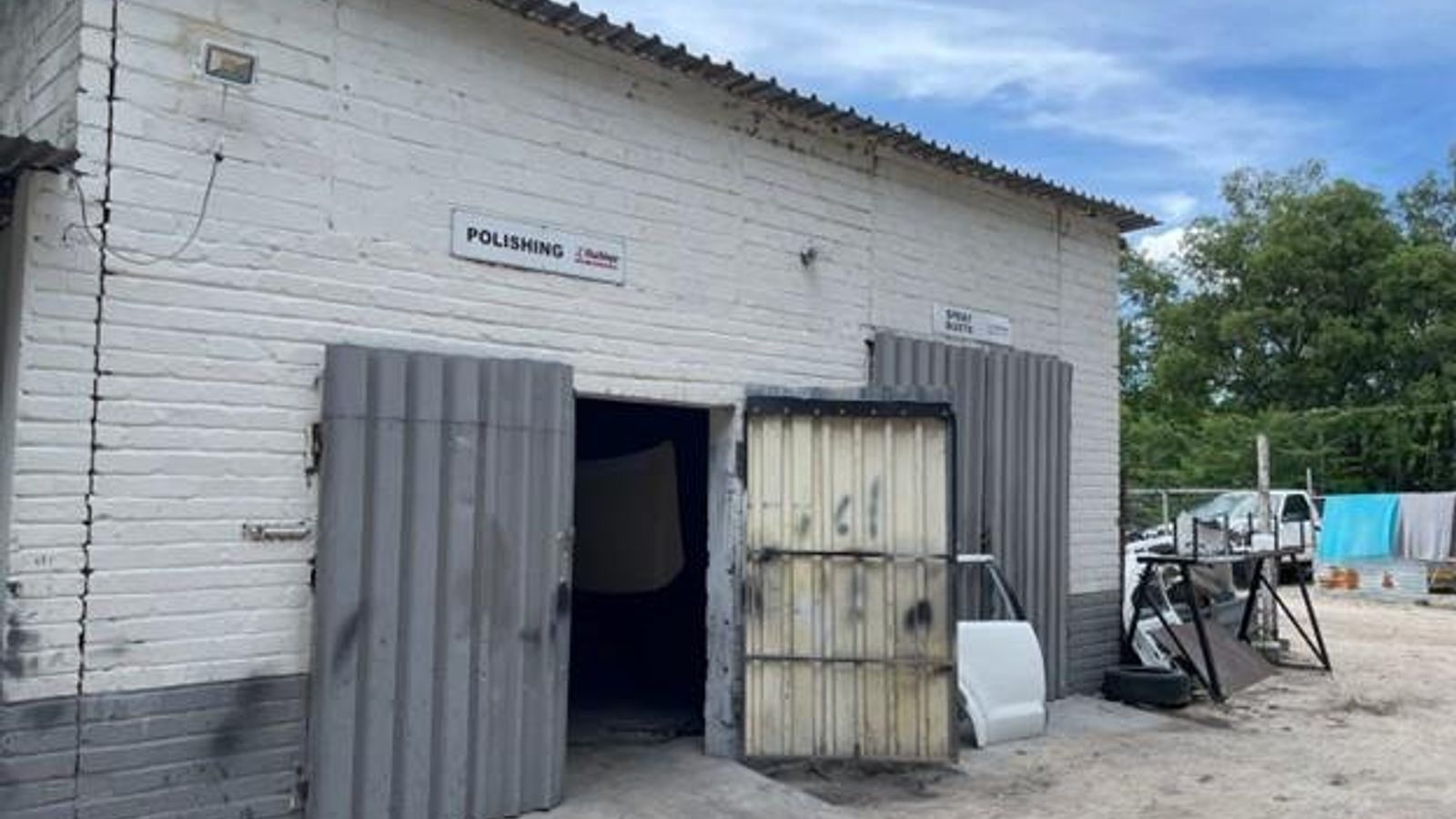 motor vehicle workshop and panel beater on the other side.