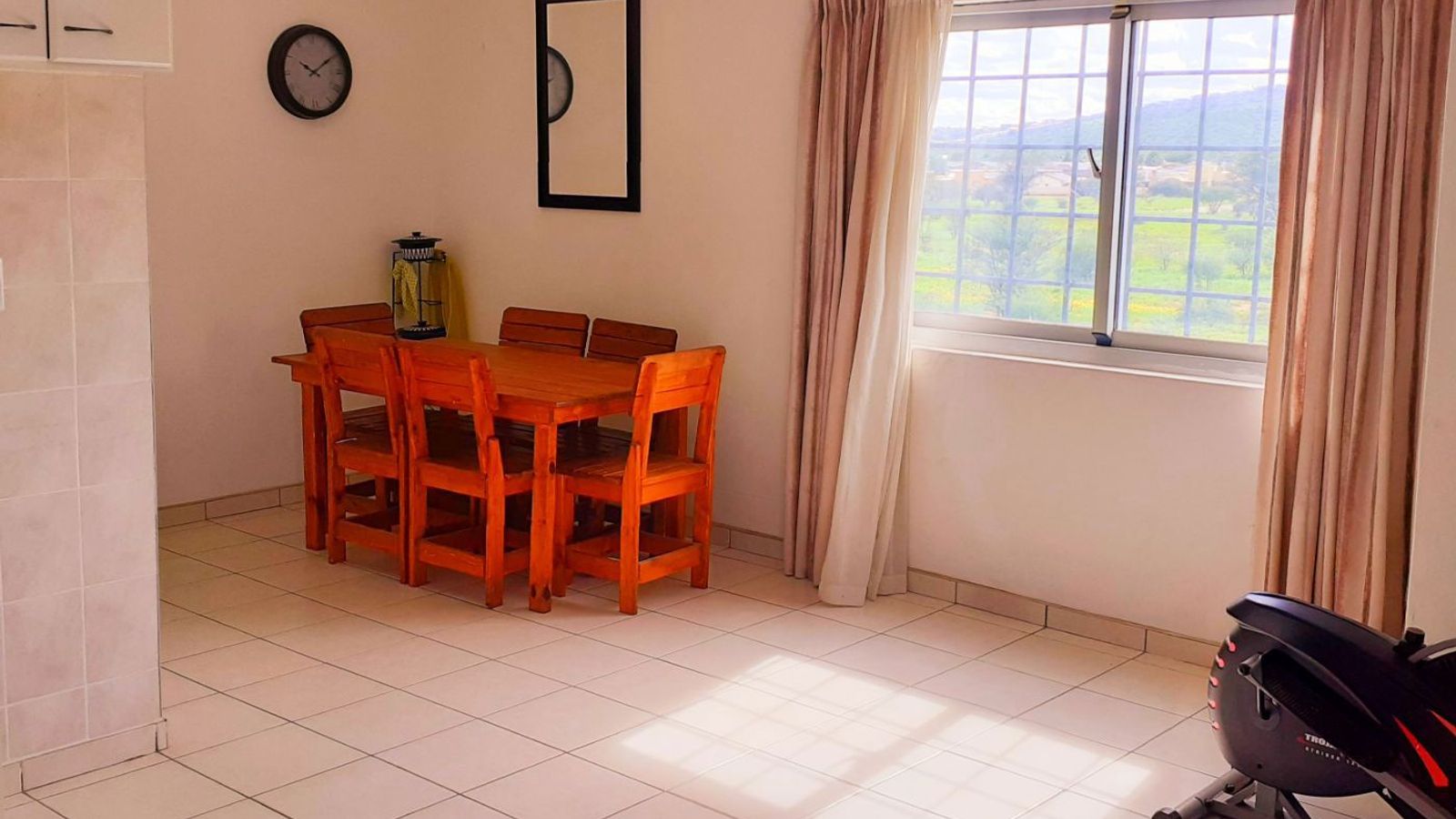 Beautiful and very neat house at the outskirts of Cimbebasia with a First floor flat. It is situated next to Prosperita, Kleine Kuppe across a national road, with a large Shopping Mall and Shopping Centres, a Private Hospital (Lady Pohamba) Schools, Offices and other amenities. Consists of a Dining room with Built-in Braai. Open plan Kitchen with BIC . 3 Bedrooms one en-suite. 2 Bathrooms. FLAT: Consists of a Big Lounge. Open plan Kitchen with BIC. One bedroom with BIC. Shower and toilet. 3x Aircons. Double garage, 2x Carports. Alarm with Beams. CCTV
