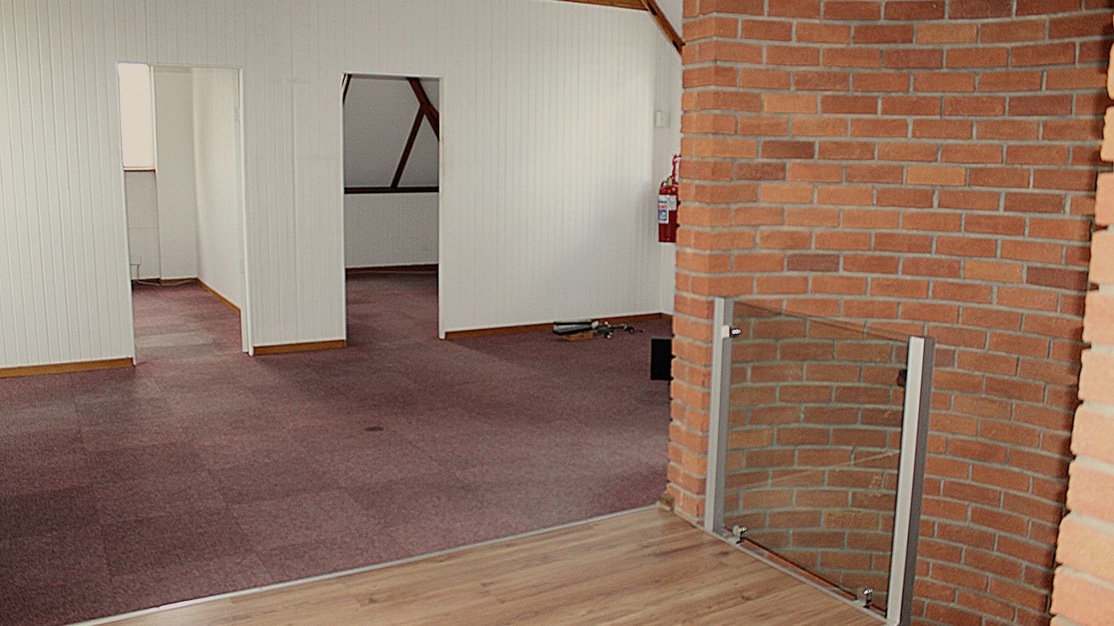 The double-storey office space is designed for functionality with multiple offices, a reception area, two kitchenettes, and essential ablution facilities. The property is securely enclosed by boundary walls with electric fencing, ensuring safety and privacy.