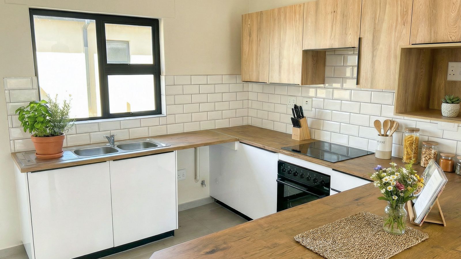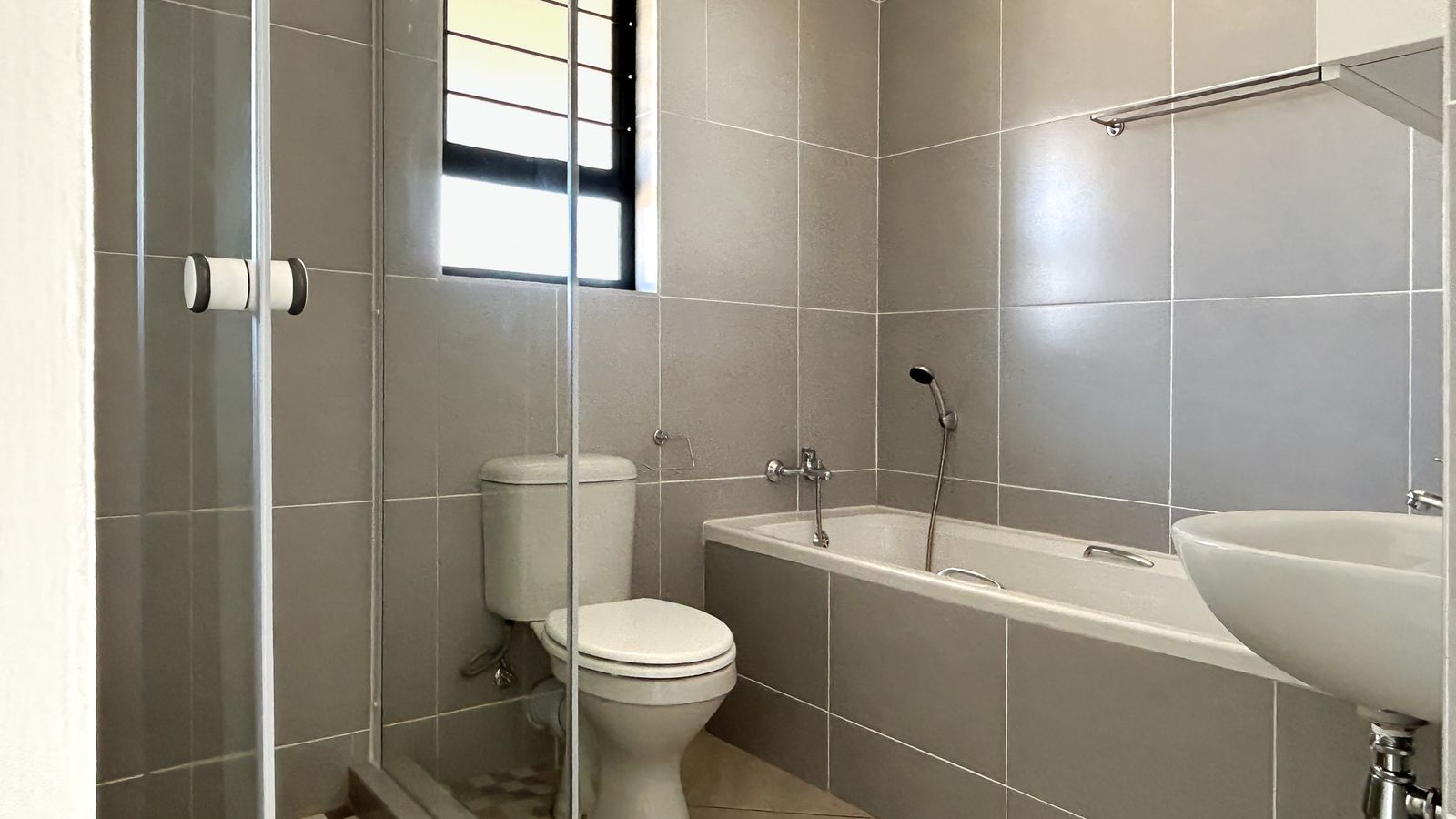 Family home offering harmonious blend of comfort, space, and upscale living. 4-bedrooms, 2-bathrooms, and sleek modern kitchen. Built-in cupboards. Main bedroom with ensuite bathroom. Second bathroom with bath and a shower for added convenience. This full title property includes a double garage and solar geyser for energy savings.