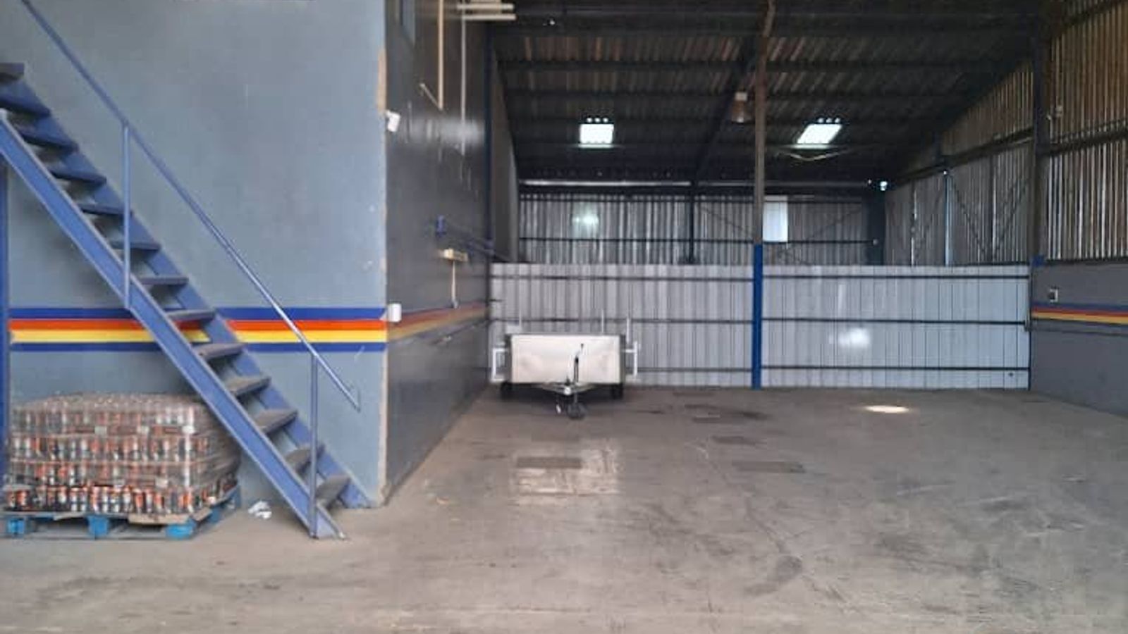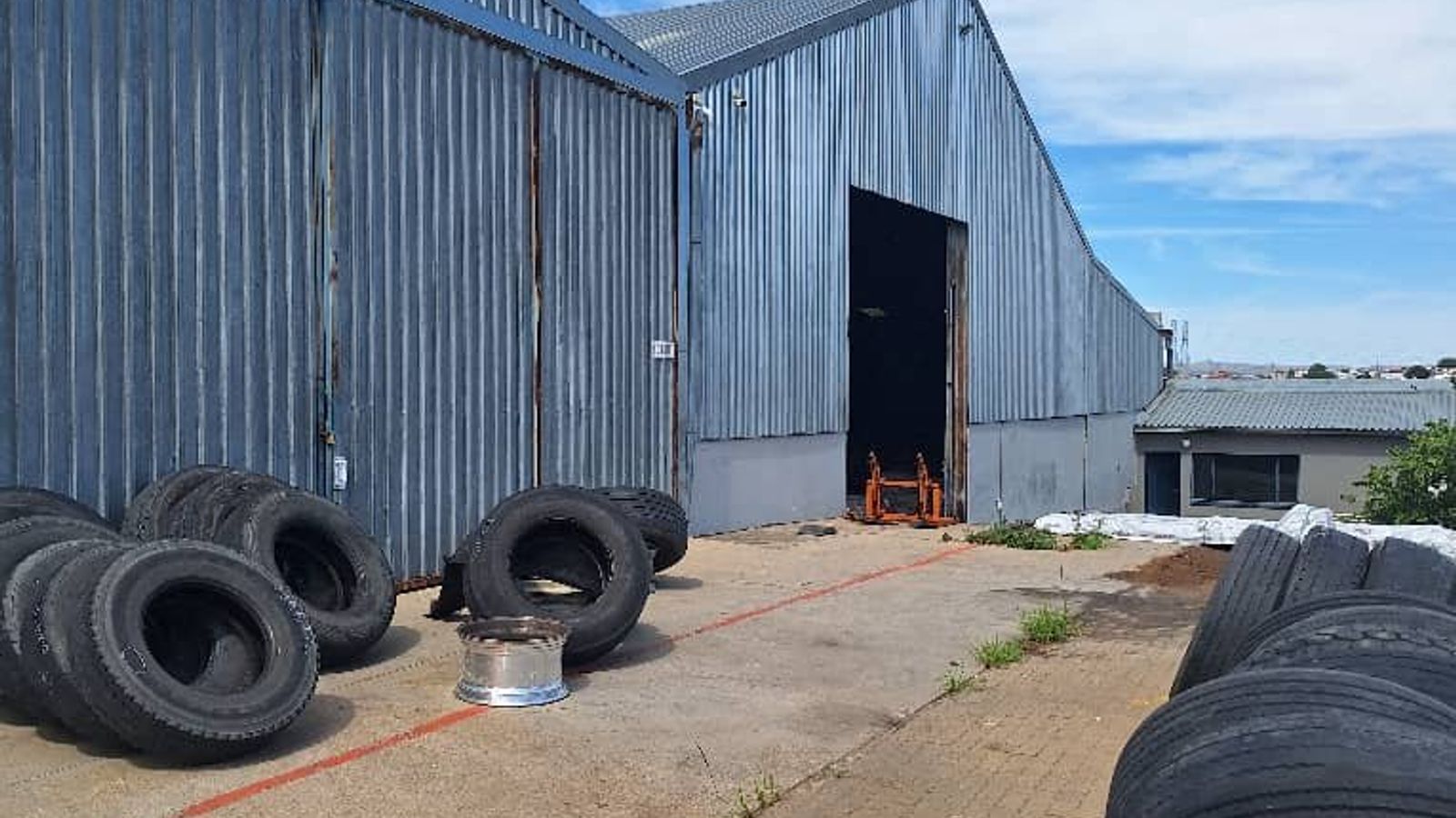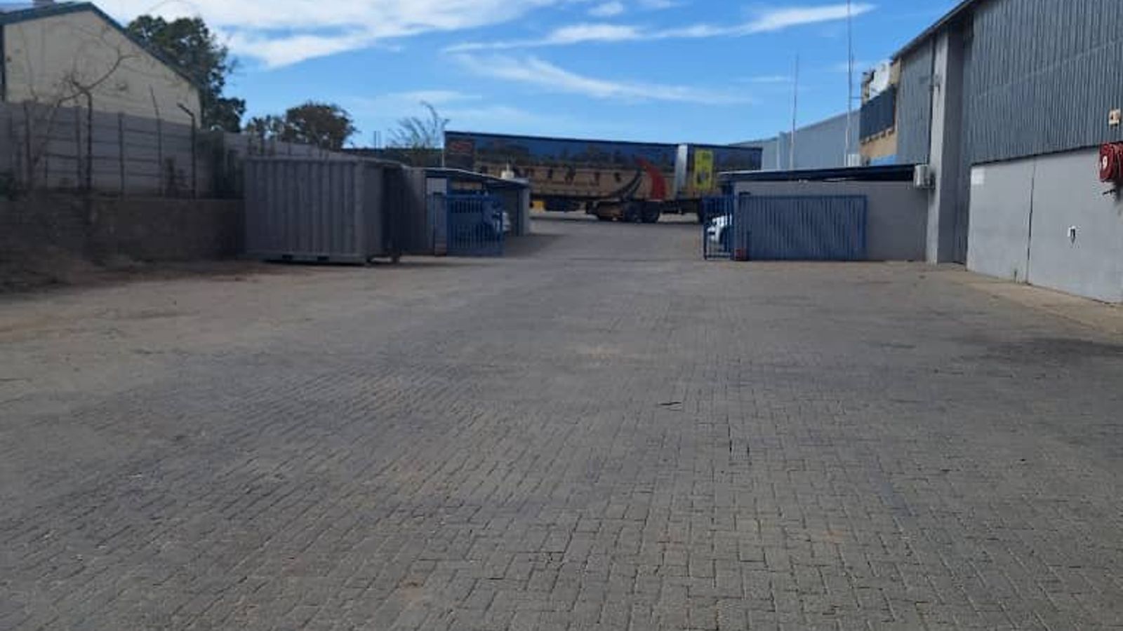 The property measures 7,235m² and is located in Lafrenz. The buildings are double story, comprising office space and a warehouse. CCTV cameras all around the property.