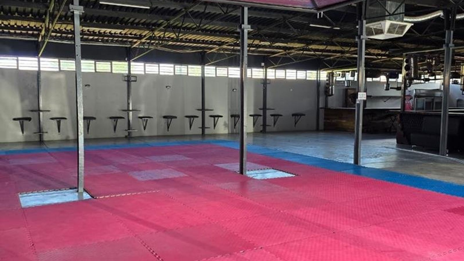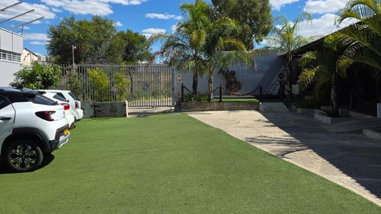 The main building features a versatile gym/function area, a comfortable sitting and eating space, a well-appointed bar area, and a fully equipped kitchen. It also includes a walk-in safe, modern ablution facilities, an office, and a convenient storeroom. A second section of the building offers additional amenities such as game rooms, sauna areas, further ablution facilities, a computer room, and extra storerooms.