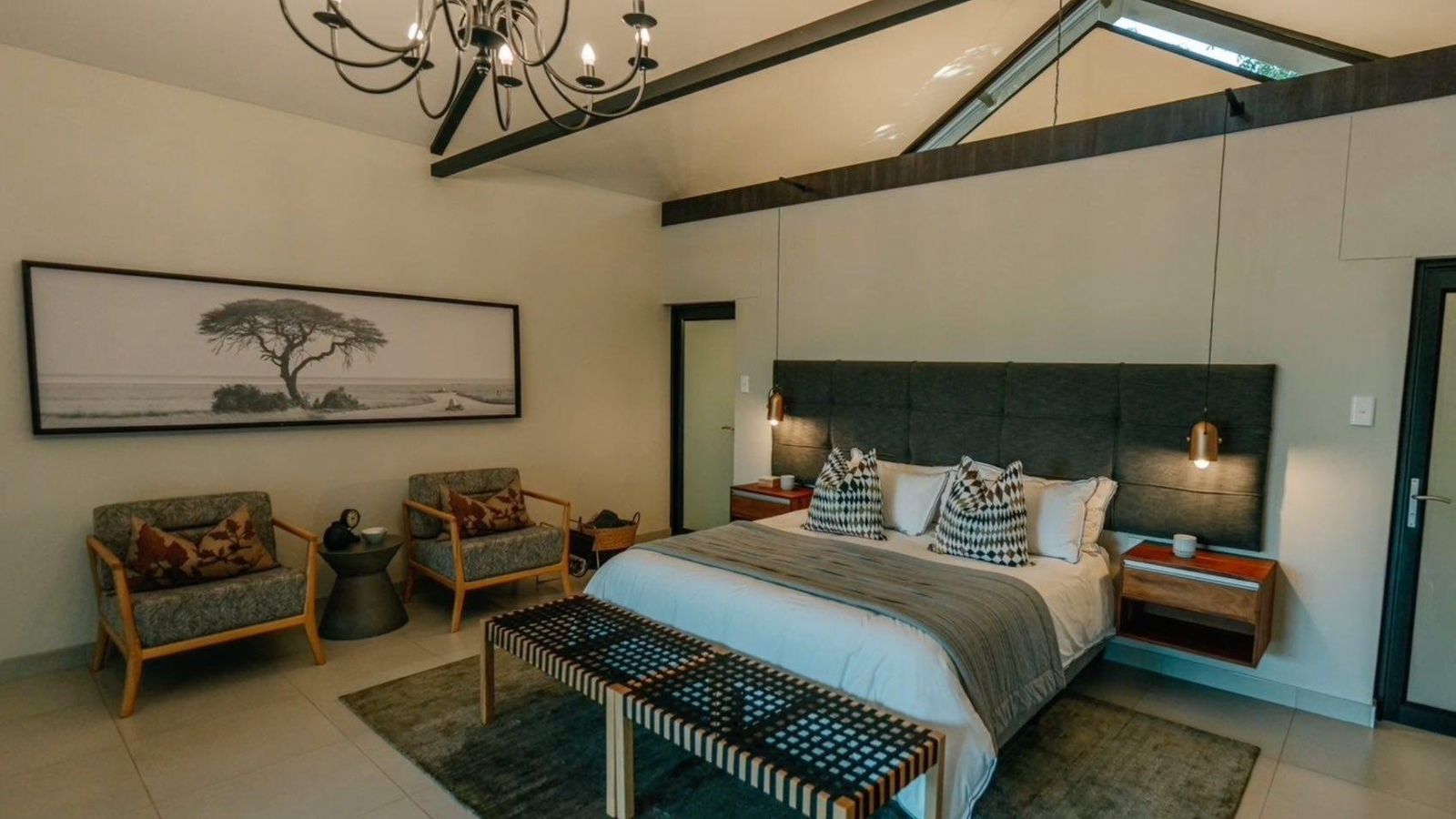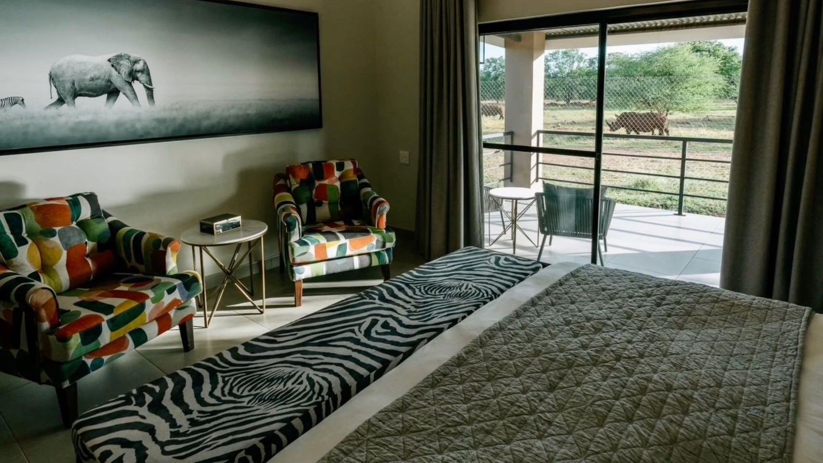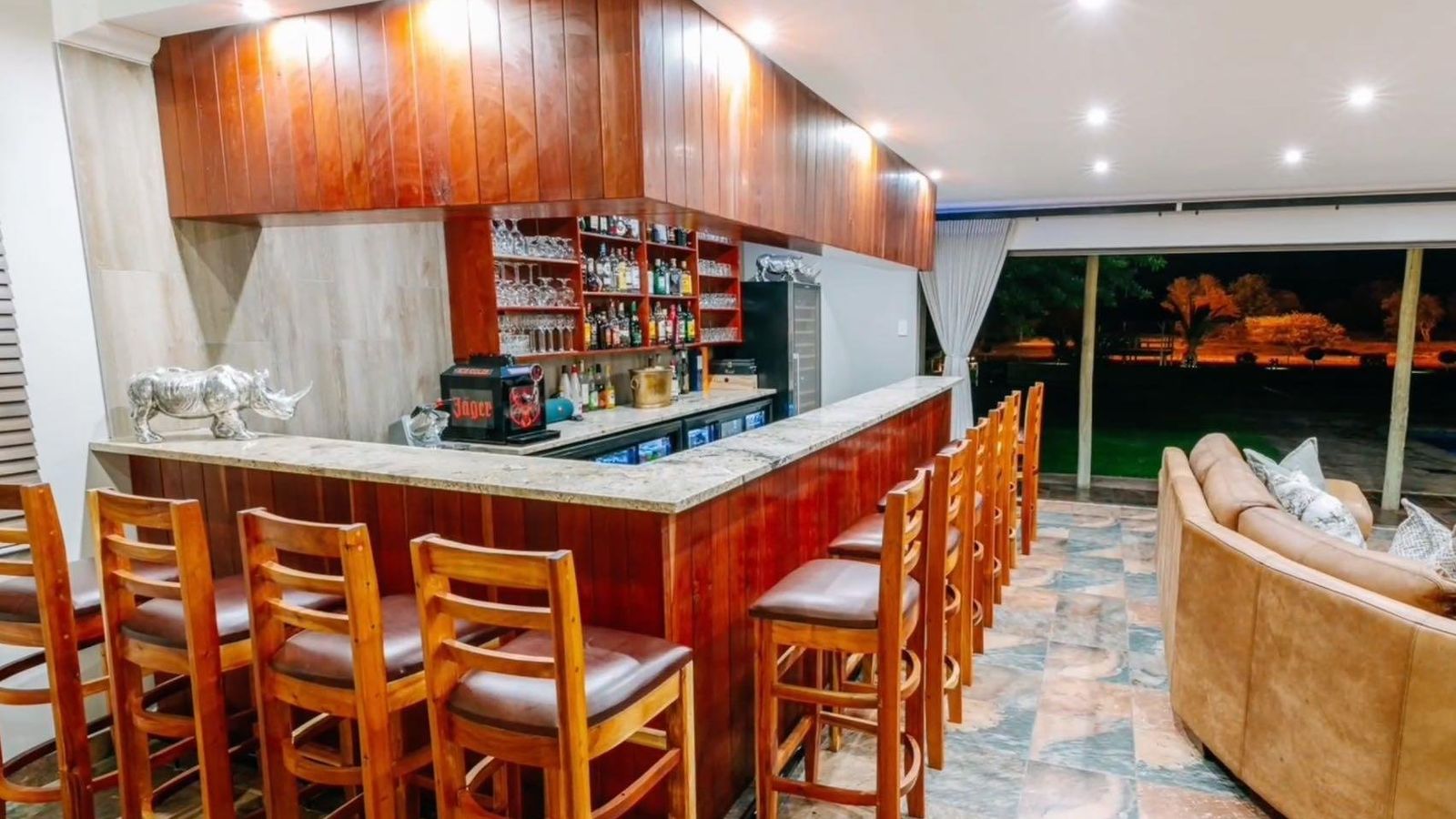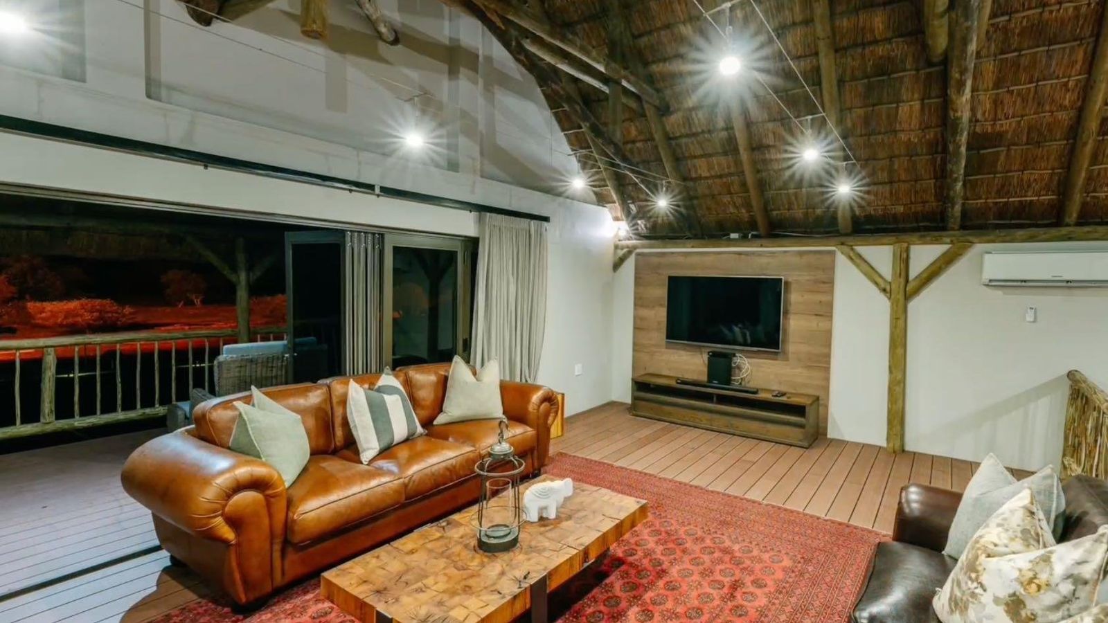 Guests can unwind in the restaurant, which includes a bar and a lapa, providing a welcoming space to relax and socialize. The lodge also boasts a swimming pool with panoramic views overlooking a waterhole, enhancing the allure of this hidden gem.