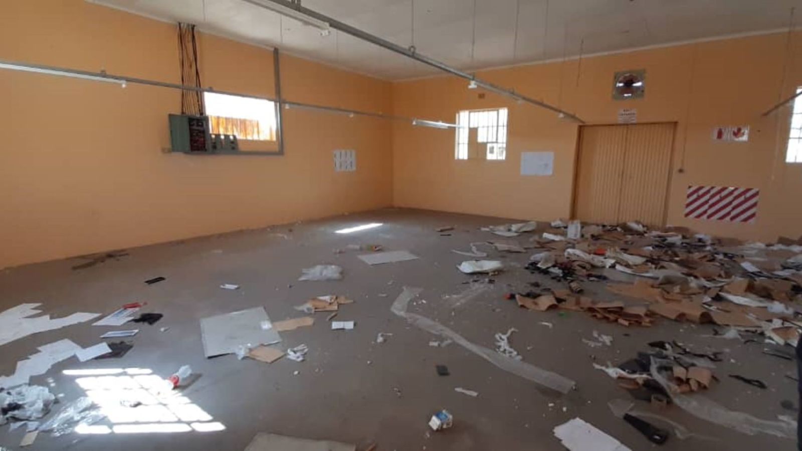 All buildings have been vandalized and is in need of repair.