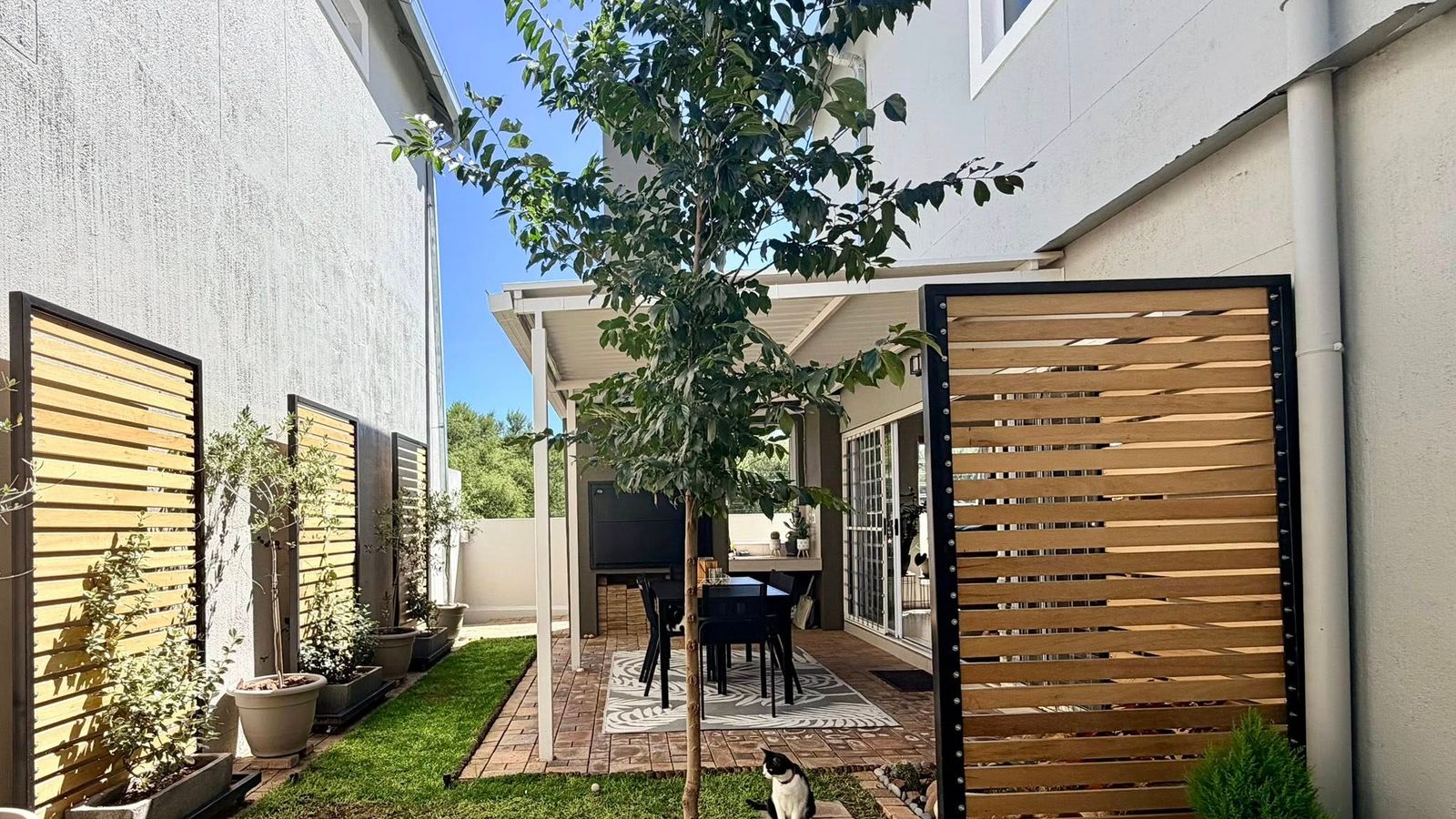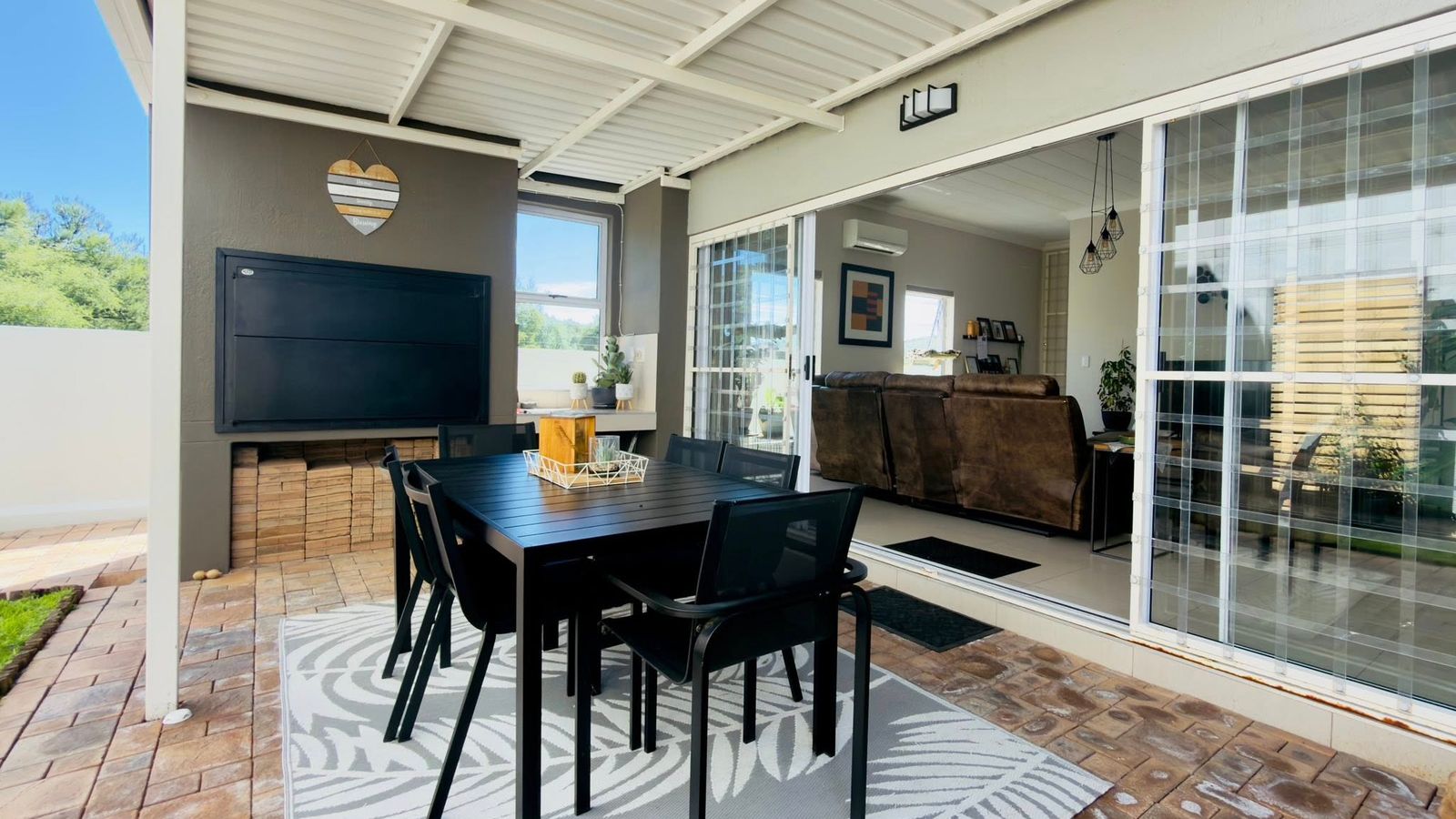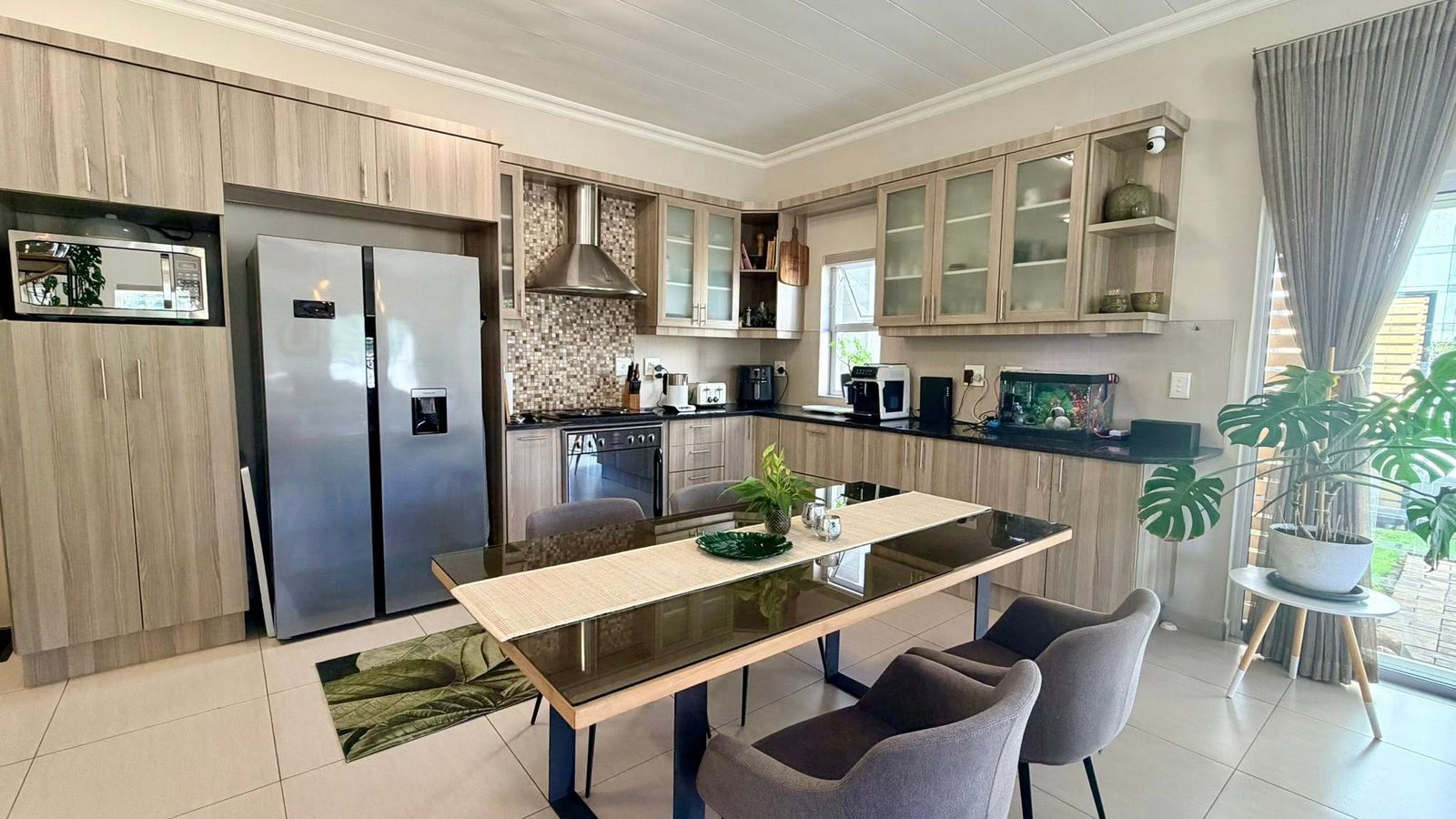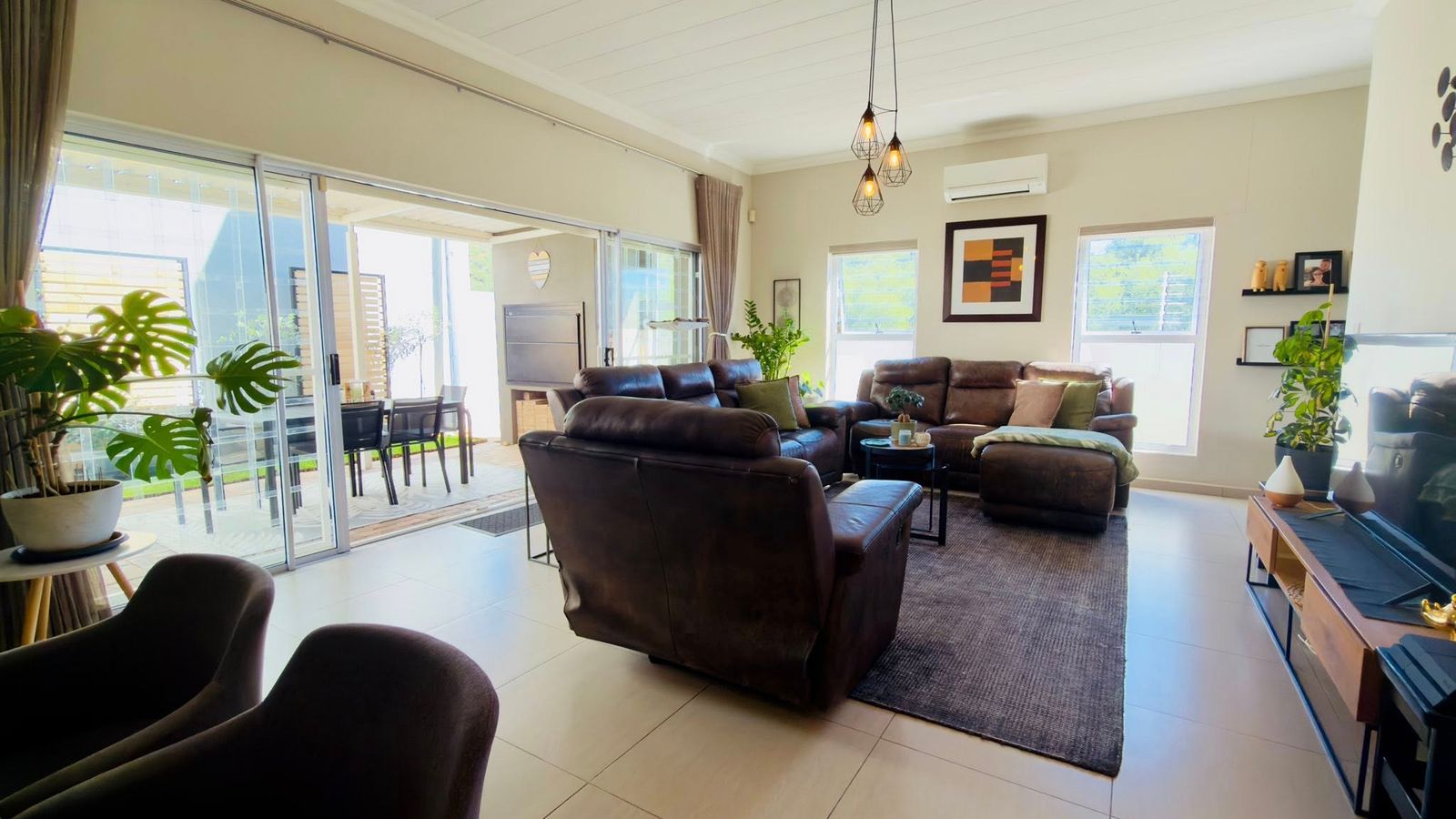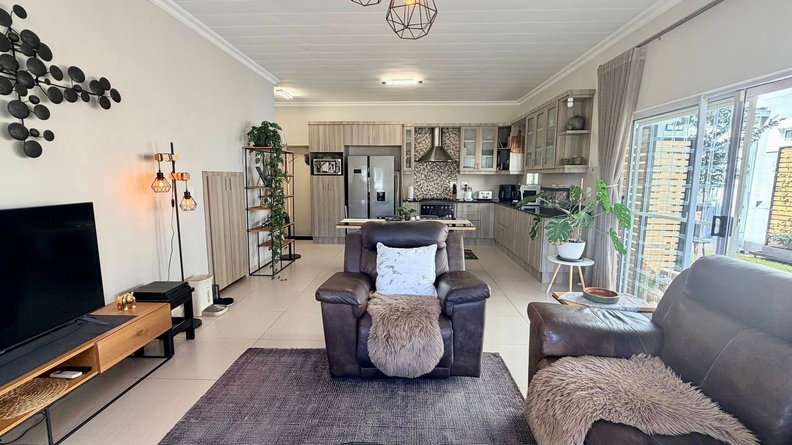 Beautiful open-plan kitchen with scullery and dining area, flowing directly into a spacious living room and out to covered entertainment patio with fitted BBQ and lovely garden - perfect for indoor-outdoor entertaining.